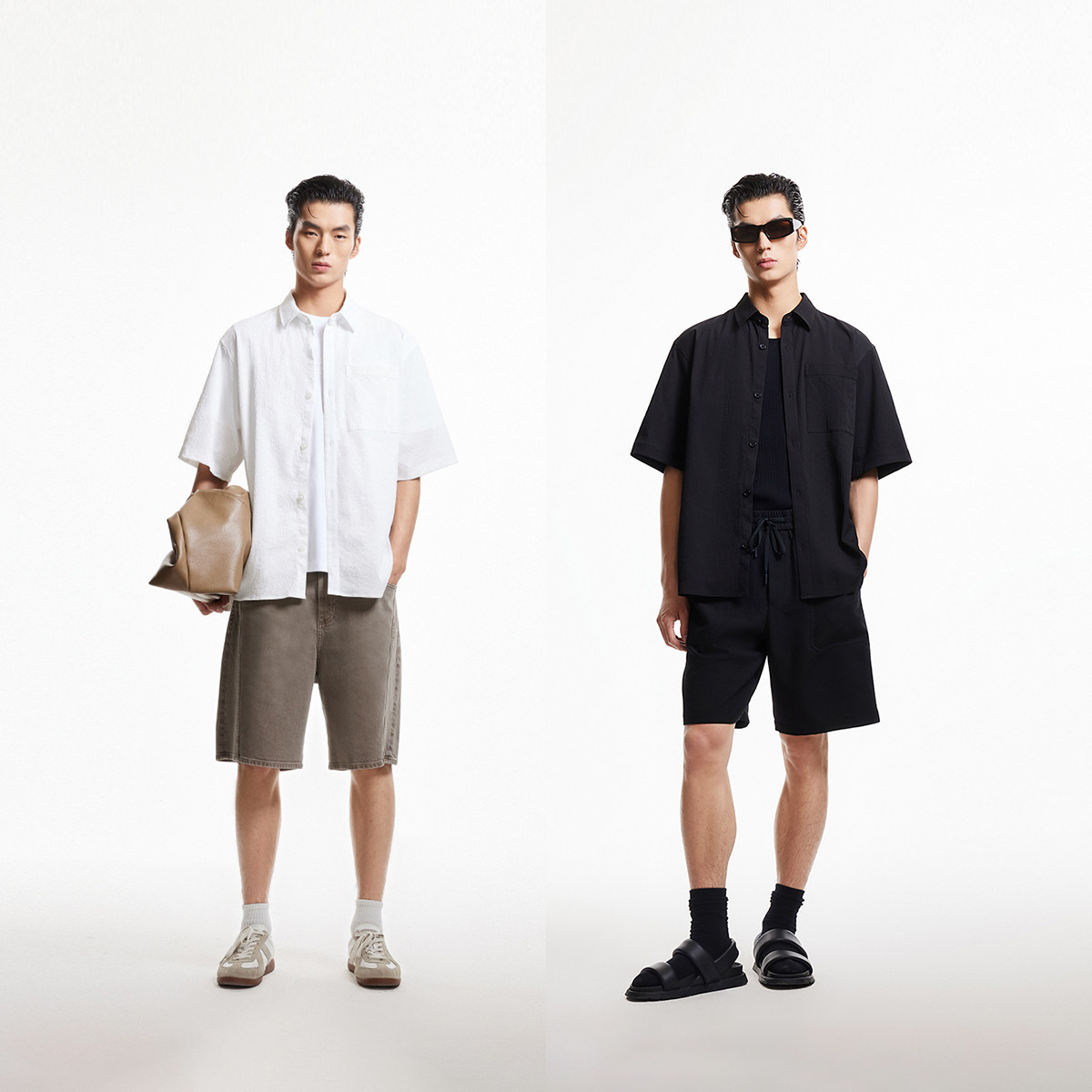 森马长袖衬衫男宽松工装外套情侣款纯色百搭上衣纯棉秋装潮酷流行
