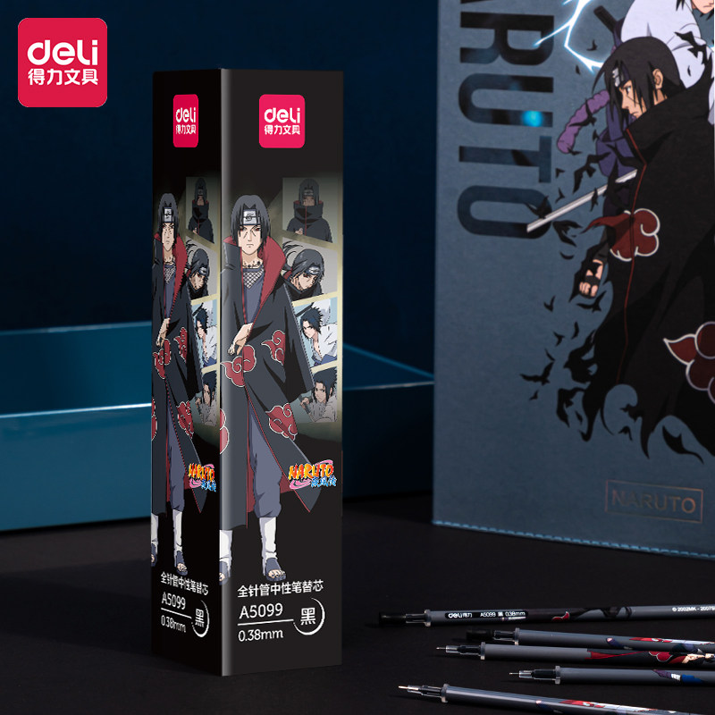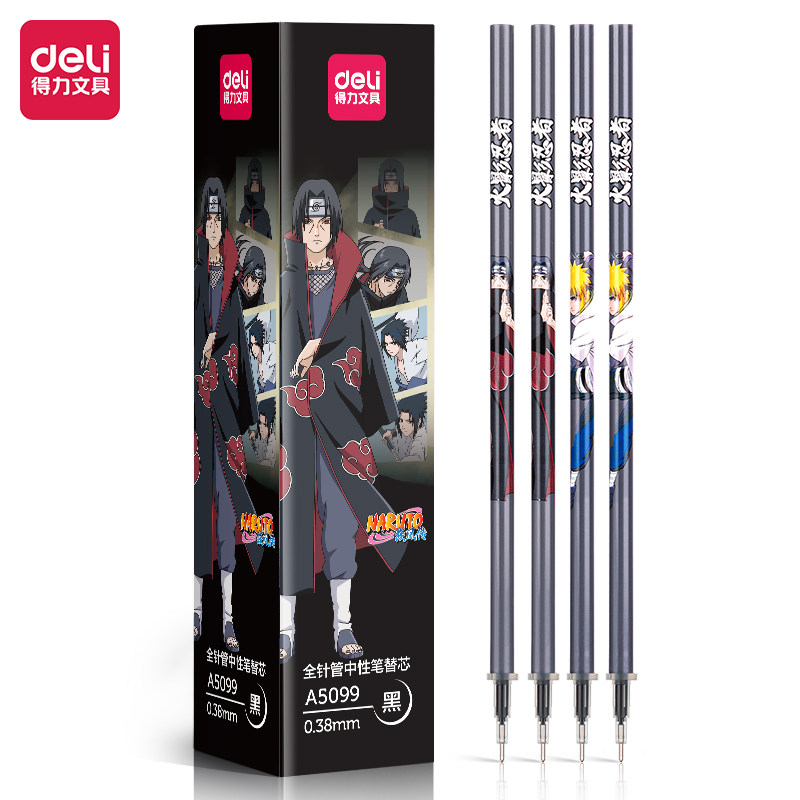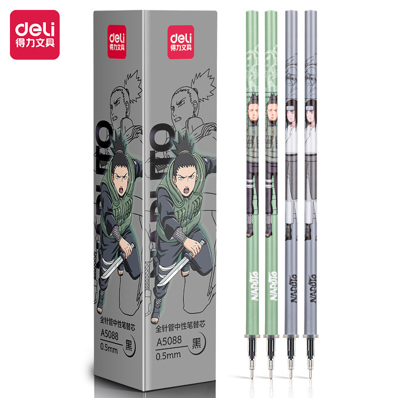 得力火影忍者中性笔芯碳素水性批发全针管水笔芯晶蓝色签字笔0.5mm学生0.38顺滑A5099学生用A5088替芯A5055