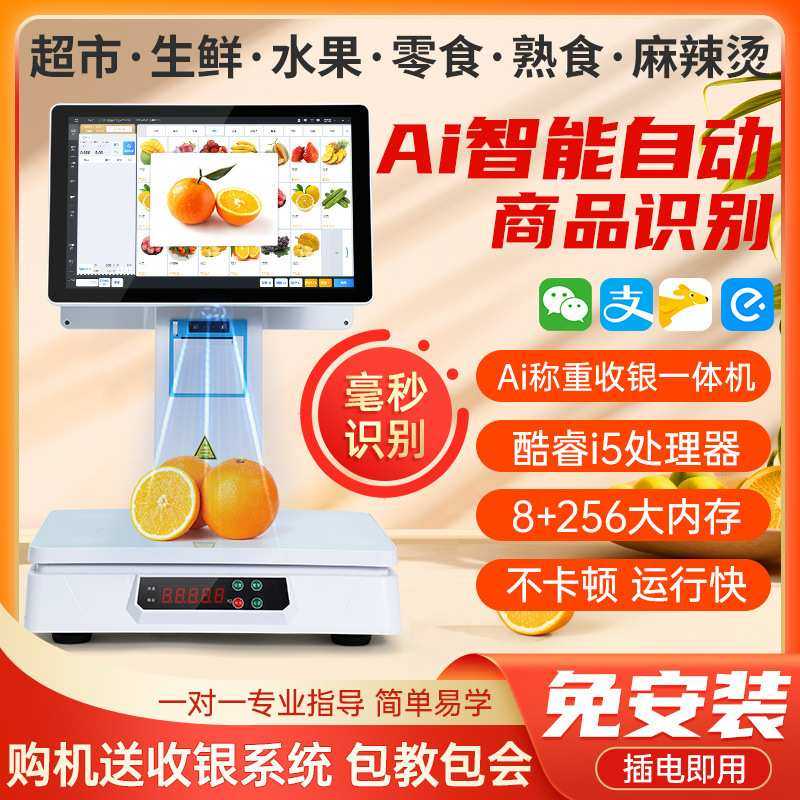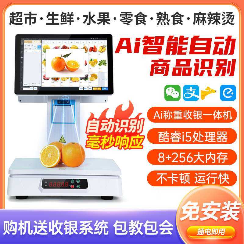 新款ai自动识别智能称重收银一体机生鲜水果蔬菜超市麻辣烫电子秤