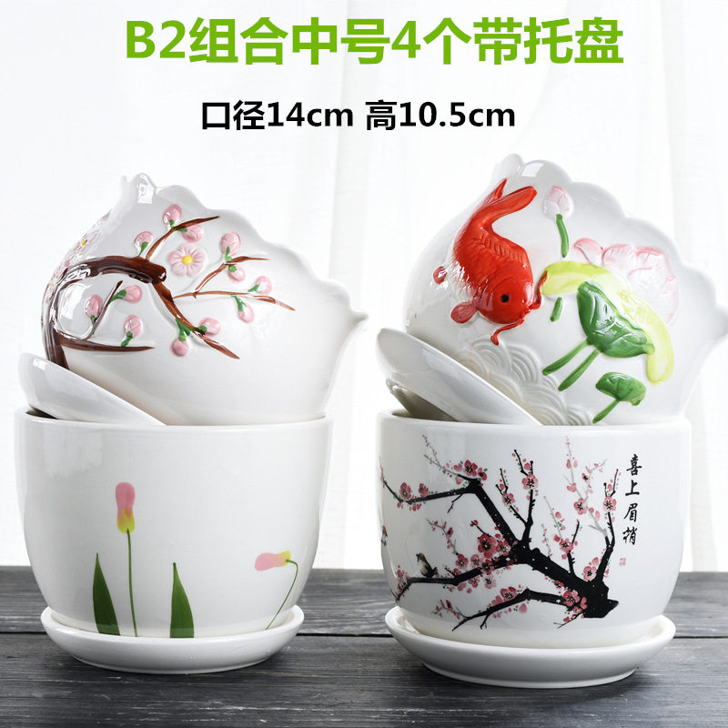 花盆陶瓷大号特价清仓带托盘创意阳台绿萝吊兰家用小多肉花盆方形