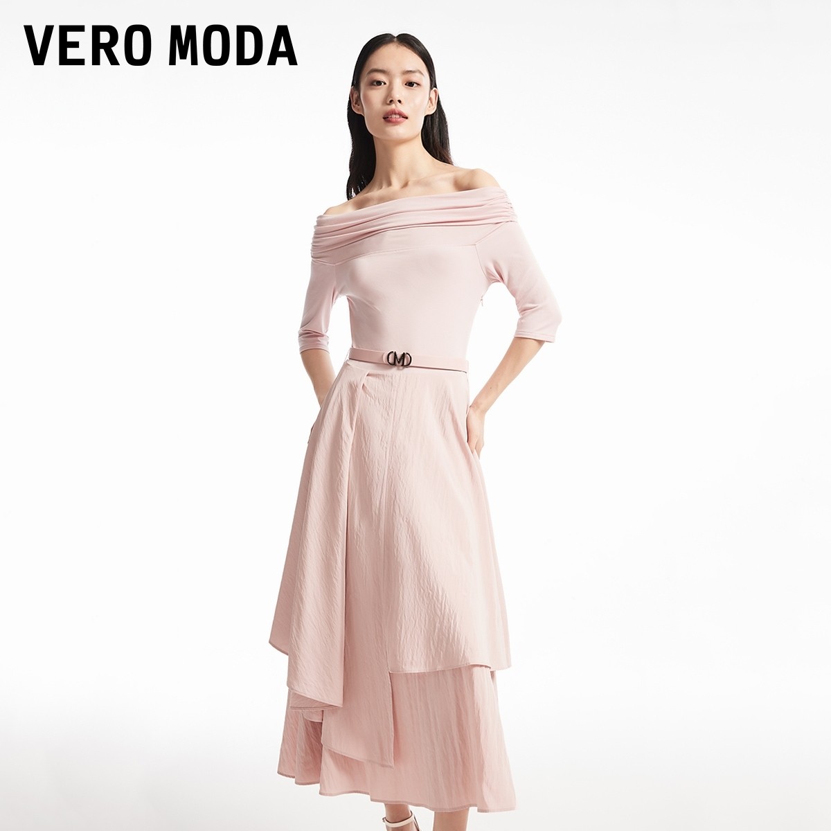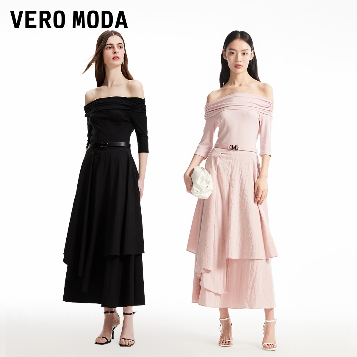 Vero Moda连衣裙夏季一字领轻熟法式风优雅宴会礼服裙32426Z003
