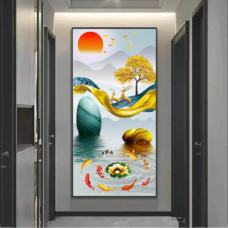 进门入户玄关装饰画现代轻奢高档挂画大气简约竖版走廊过道壁画