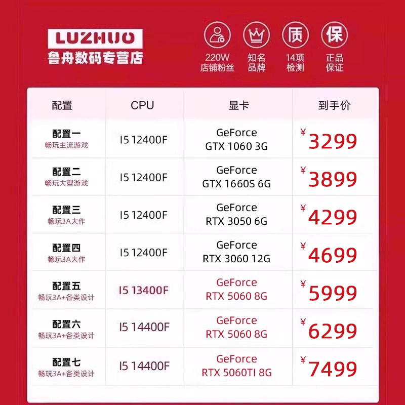 14代酷睿i5 14400/13400F/12400F/RTX3060/5060/5060TI台式电脑主机吃鸡电竞游戏直播设计整机全套DIY组装机