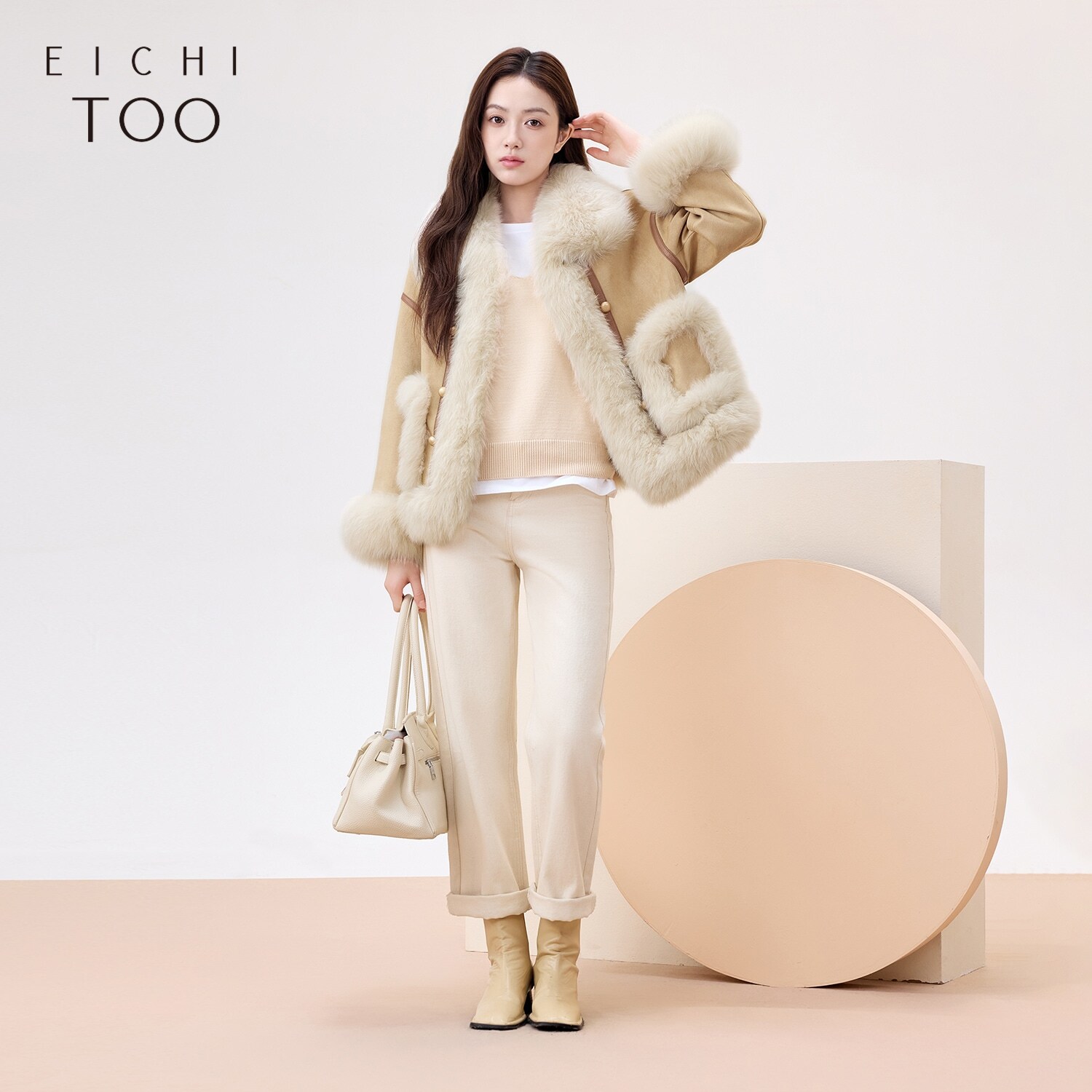 爱居兔高级感皮草外套女冬季新款拼接设计感长袖外套
