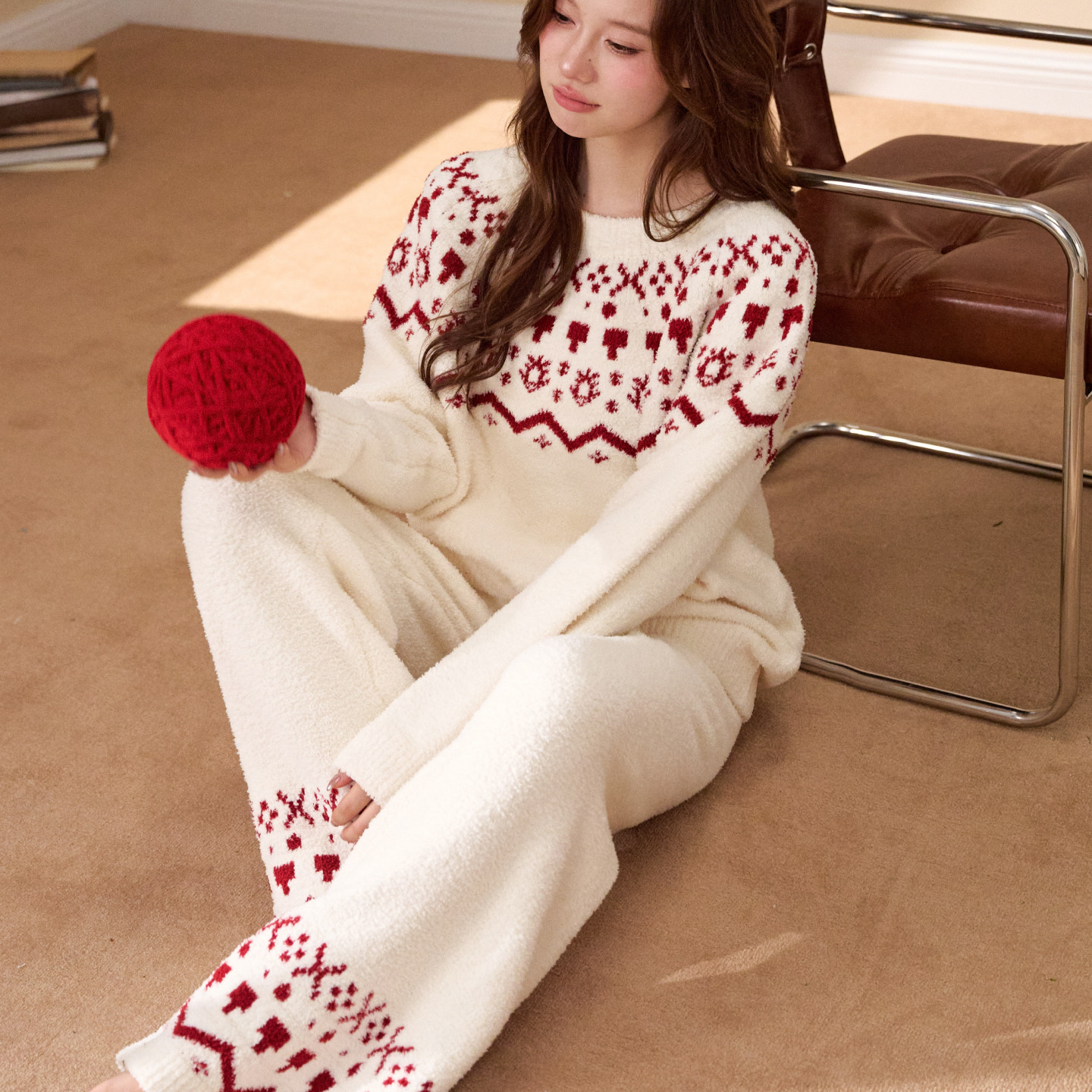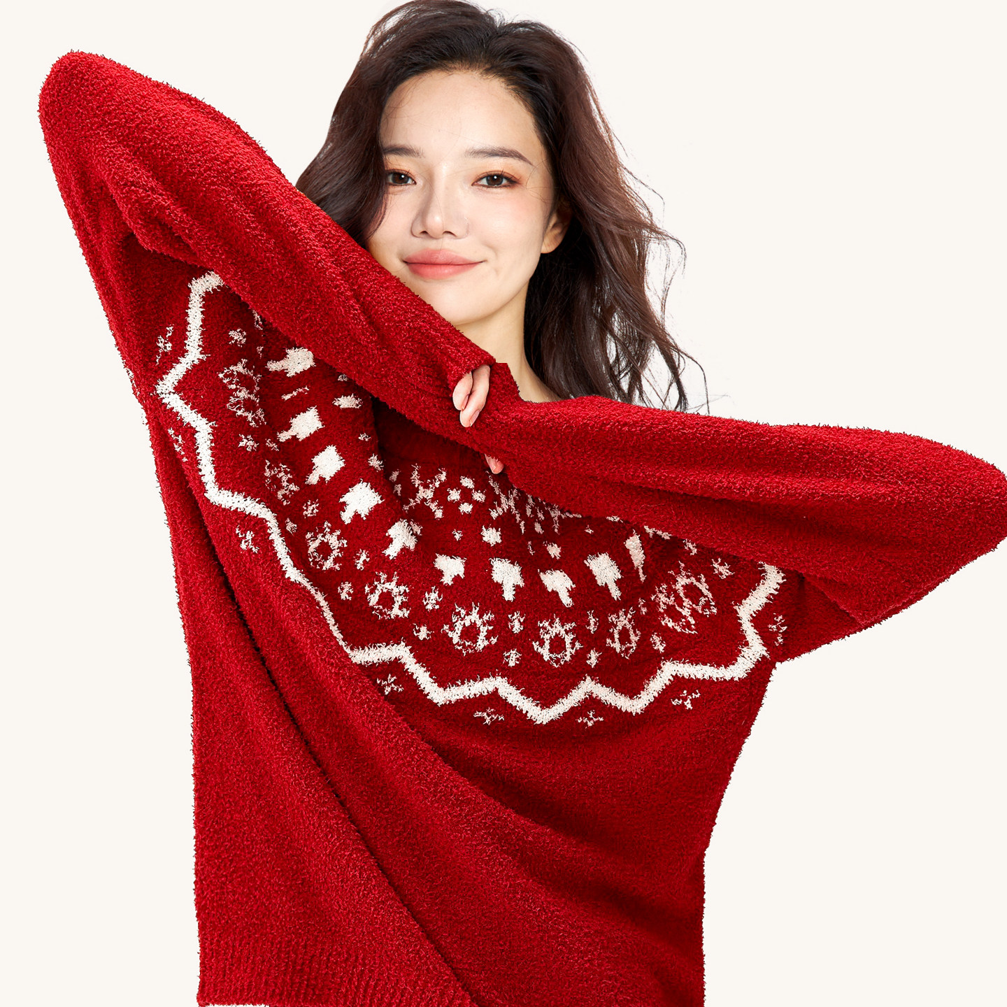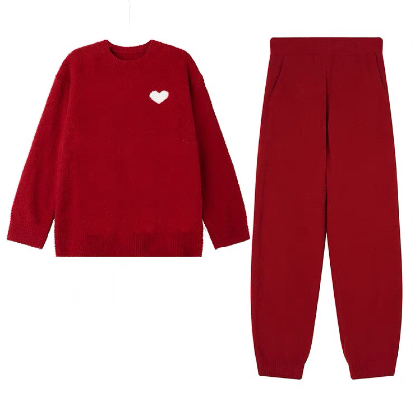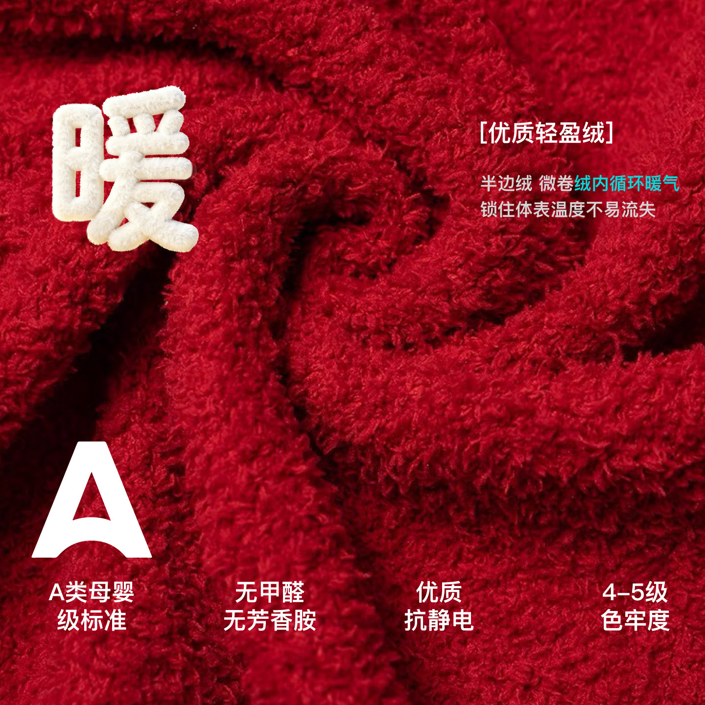 红色半边绒家居服套装厚款保暖马年本命年新款送礼物冬季新年睡衣