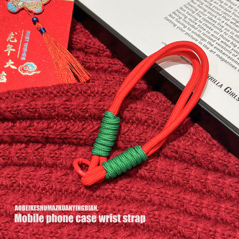新年中国红手腕挂绳新款酒红创意耐用结实日韩潮编织手工挂绳防丢钥匙扣手环便携腕带男女苹果华为小米挂饰绳