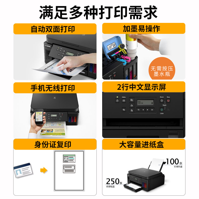 【国补15%】佳能G5080/6080/7080墨仓式多功能打印机复印扫描一体机自动双面彩色喷墨A4传真有线无线办公