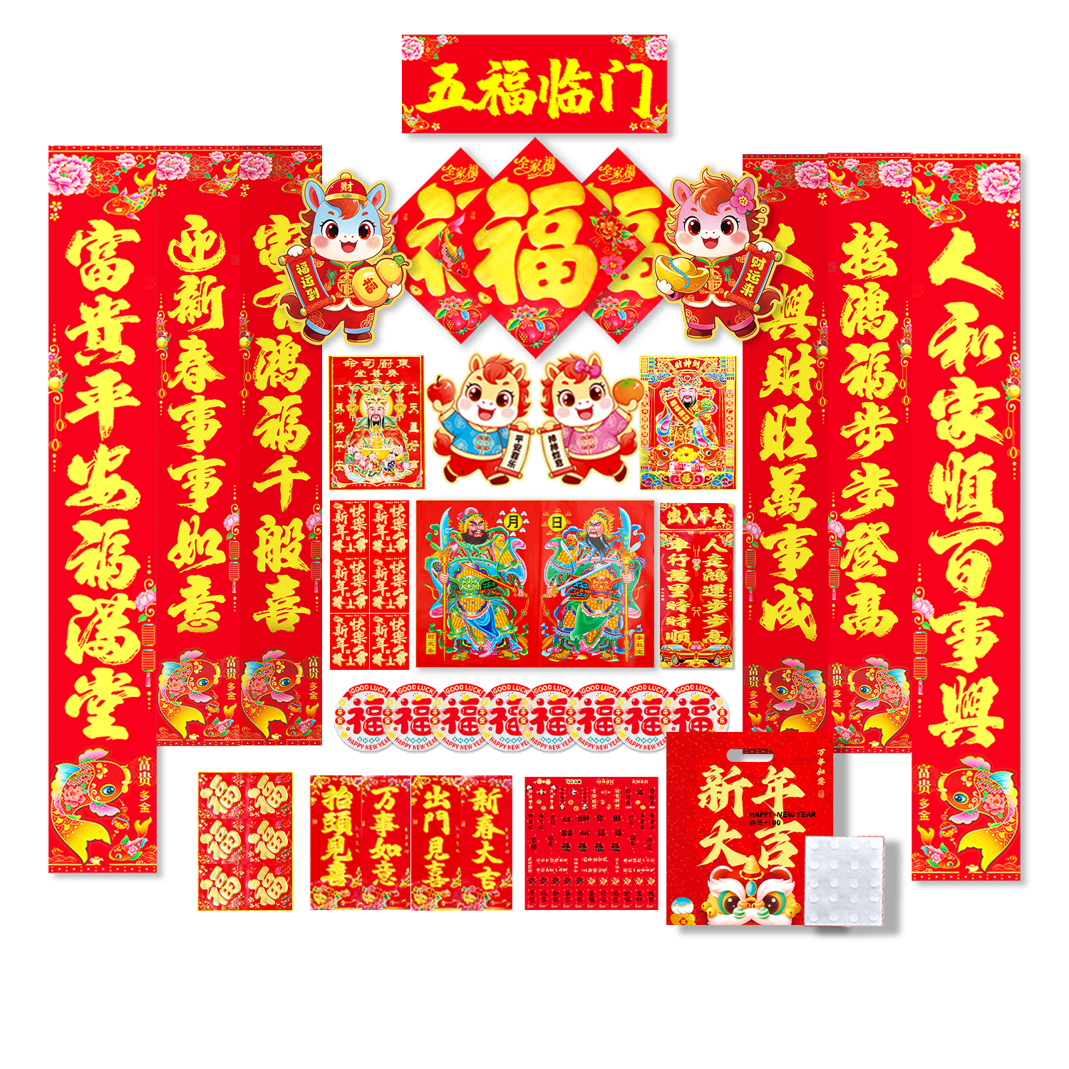 新春对联大礼包2026马年新年春节装饰福字门神农村大门口套装静电