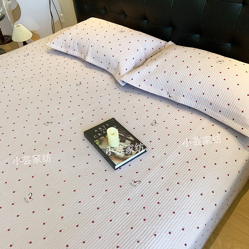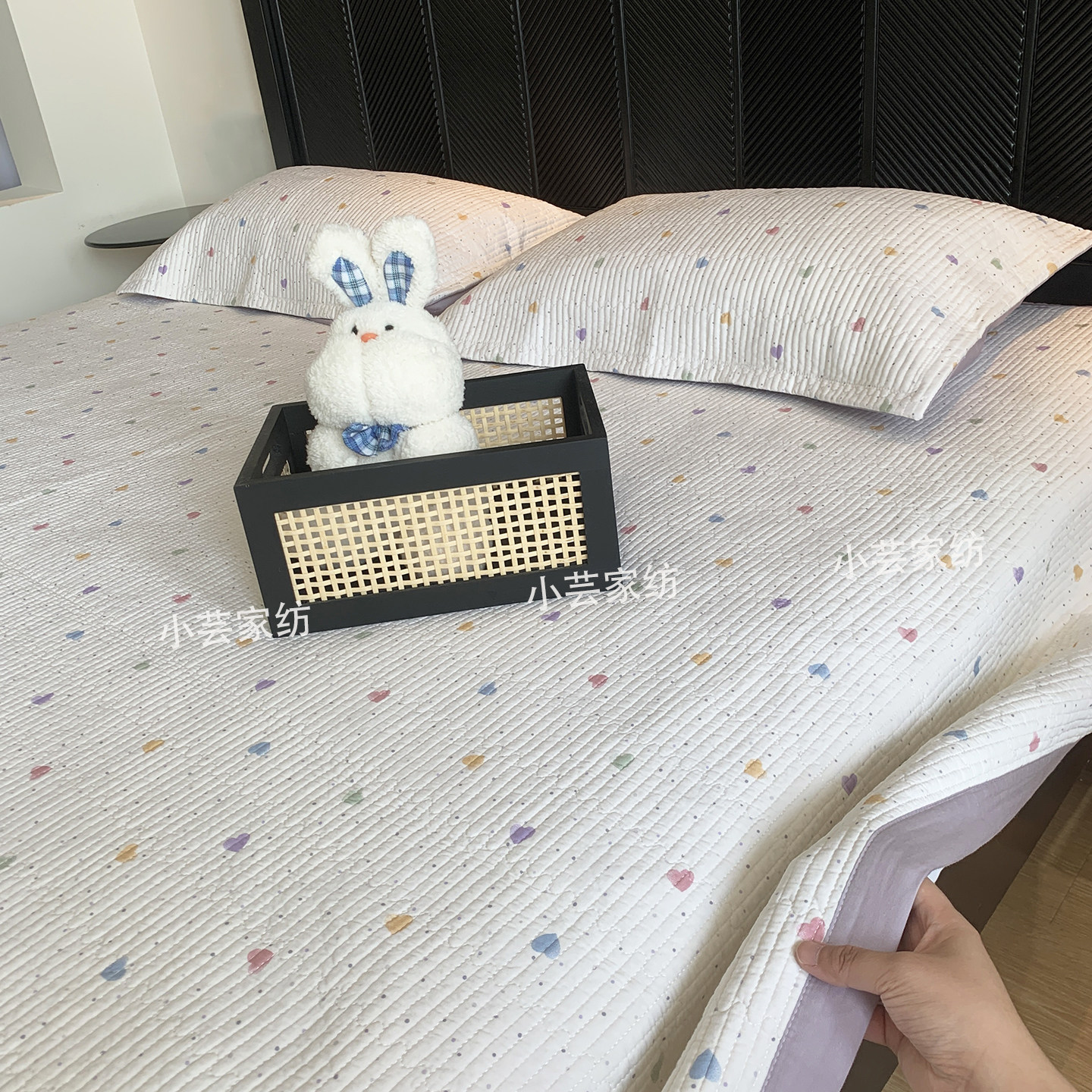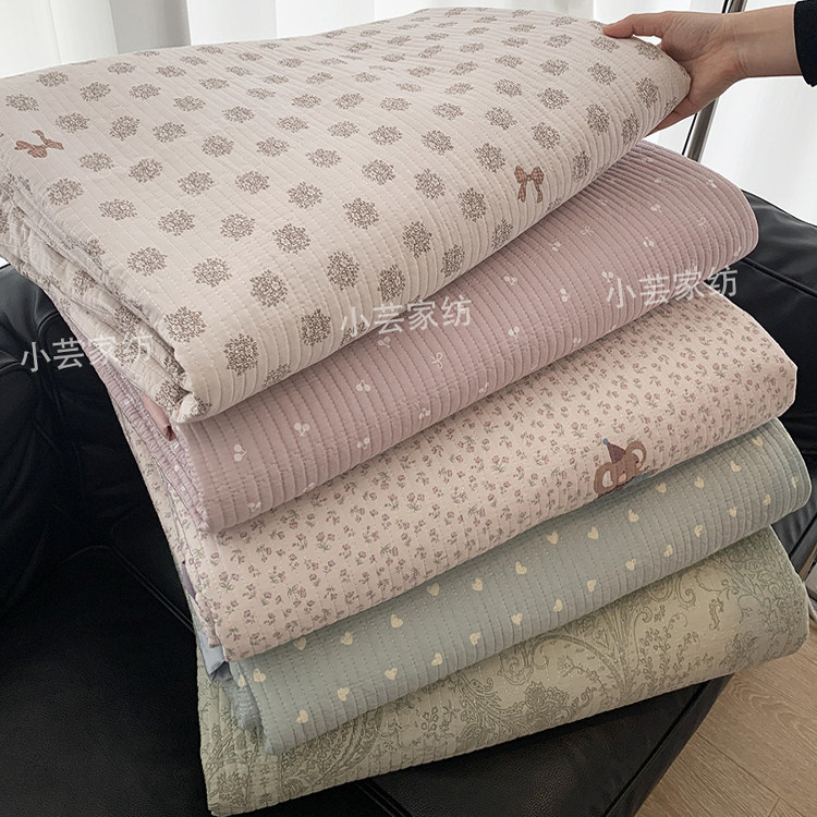 韩国大鹅小清新碎花双面纯棉床盖单件四季通用绗缝夹棉床单不起皱