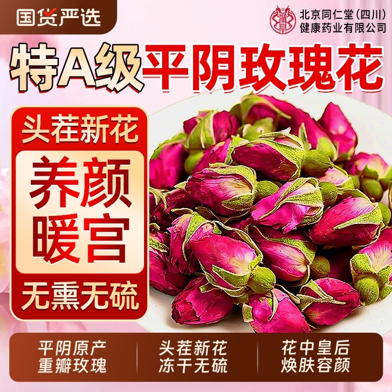 北京同仁堂平阴玫瑰花茶官方旗舰店正品疏肝解郁重瓣玫瑰花干泡水