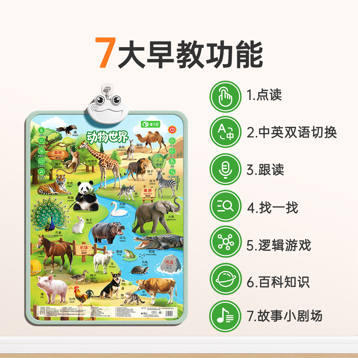 早教有声挂图动物认知发声启蒙看图点读发音婴幼儿宝宝学说话墙贴