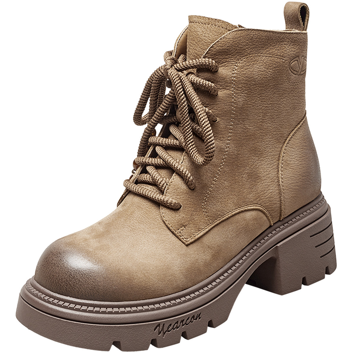 意尔康女鞋2025冬季皮鞋复古真皮休闲马丁靴粗跟英伦加绒保暖短靴