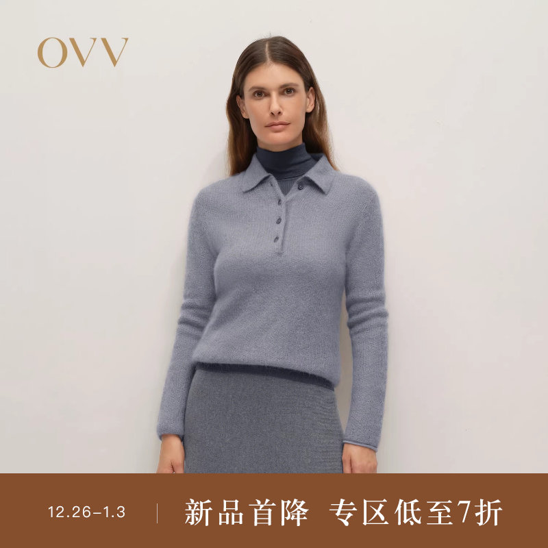OVV2025秋冬新款女装POLO领蓬松柔软马海毛长袖针织衫