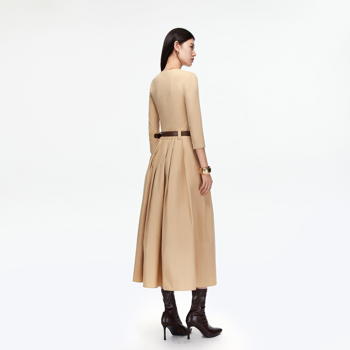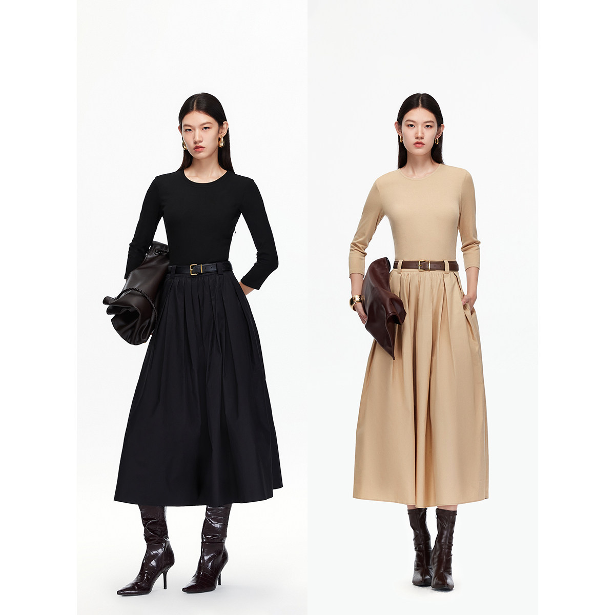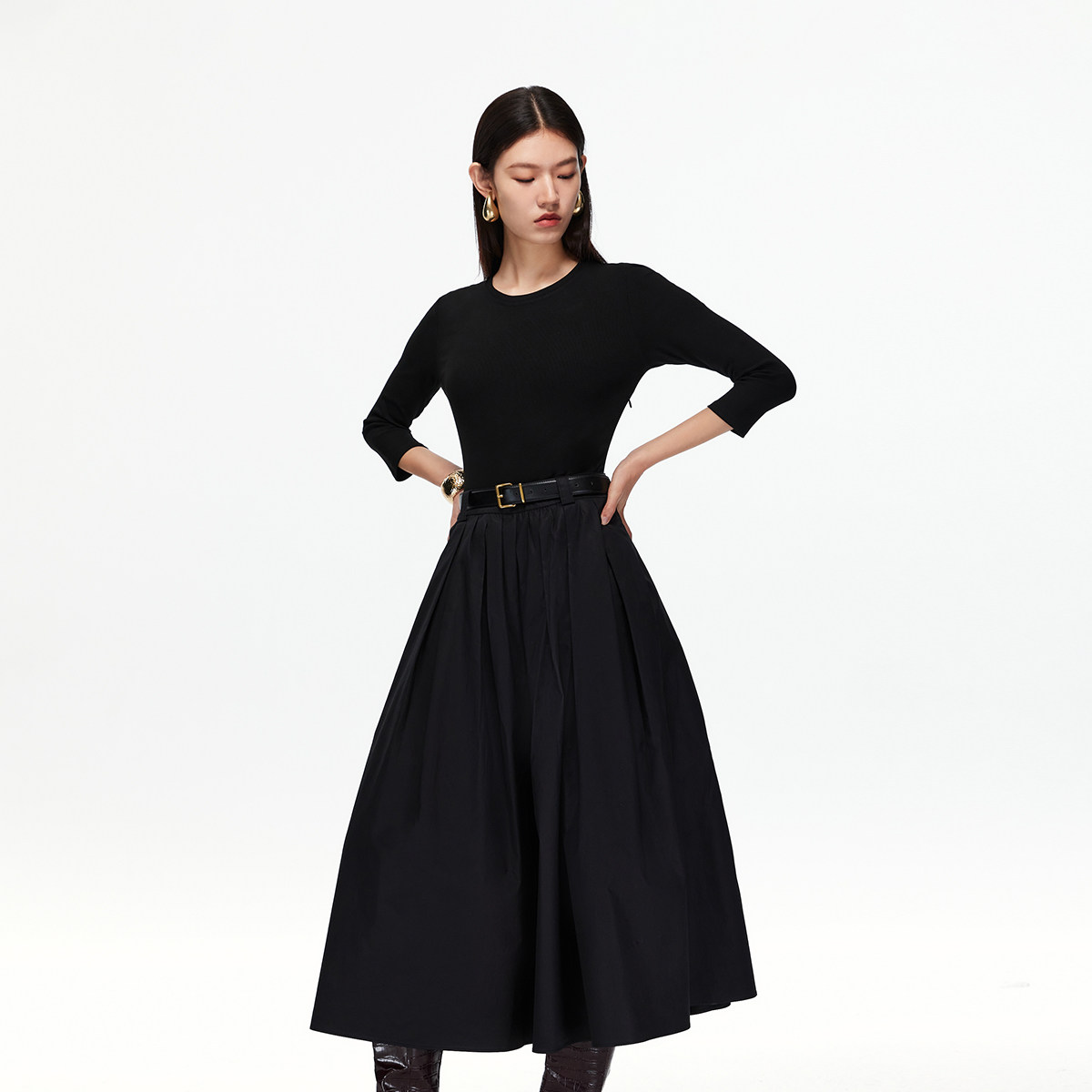 Vero Moda连衣裙25秋季新款圆领针织拼接A字长裙淑女风32537C005