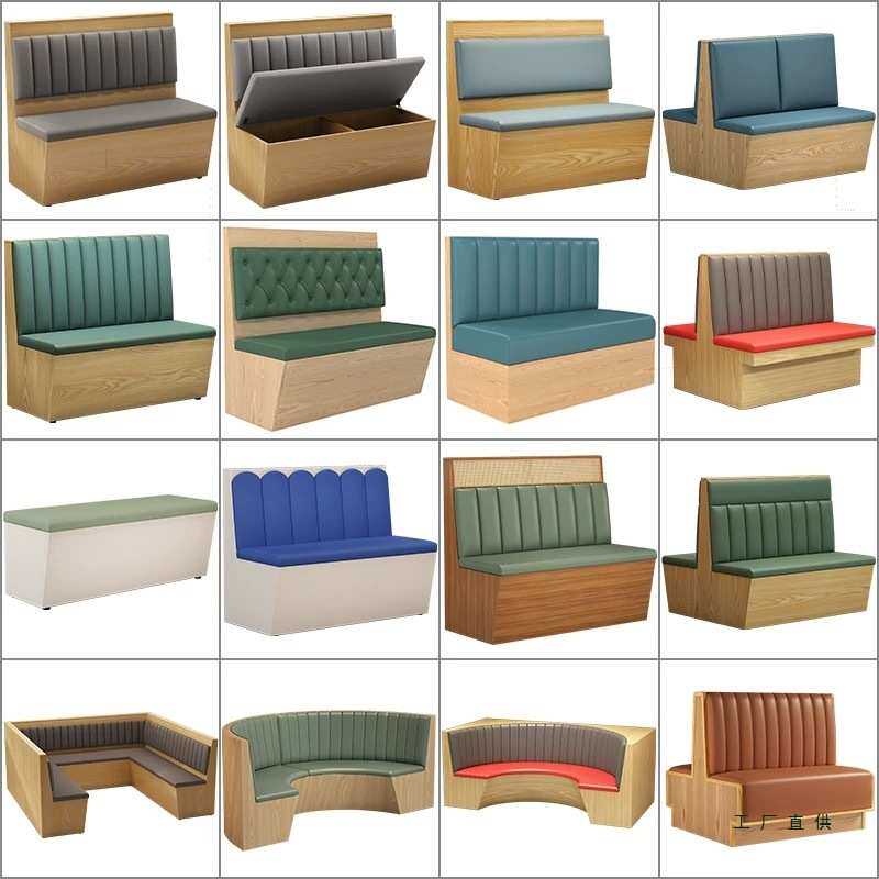 港式茶楼西餐厅实木编藤卡座沙发桌椅储物商用窄长条凳不锈钢家具