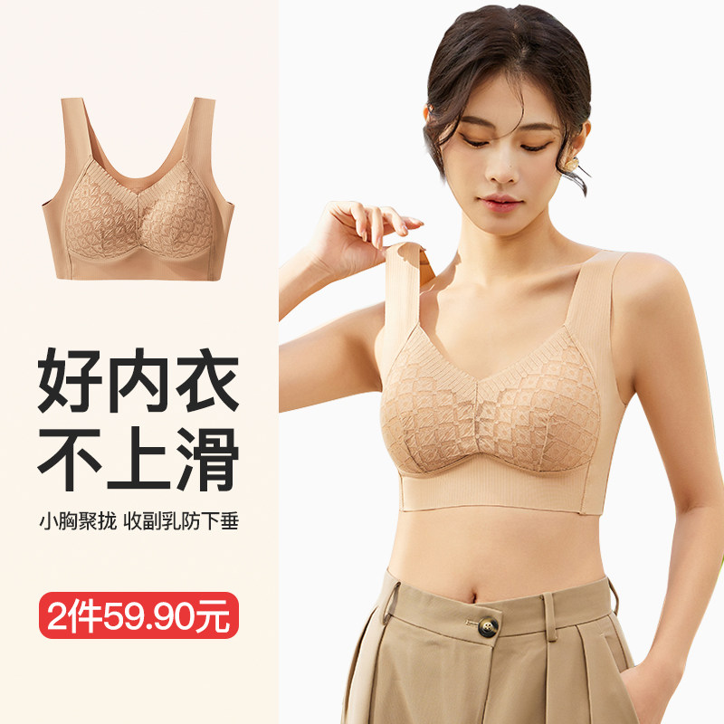 彗星天使内衣女生无痕文胸大胸显小蕾丝背心式无钢圈大码美背胸罩