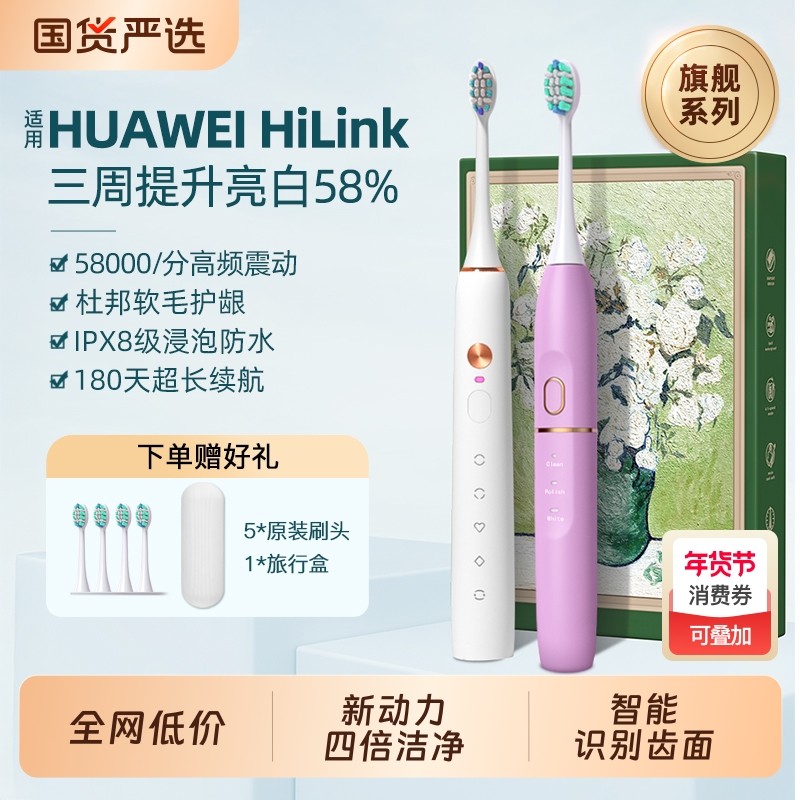 HYSPin汇优扫振电动牙刷成人情侣软毛家用充电式自动智能生日礼物