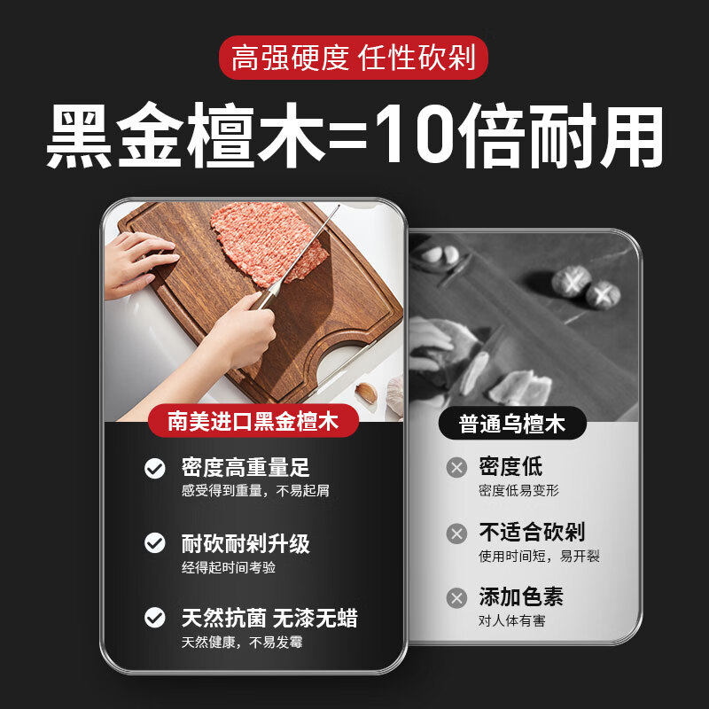 王麻子家用菜板抗菌防霉木质砧板厨房专用黑金檀木案板官方旗舰店