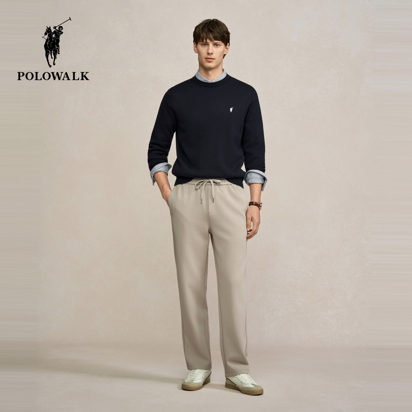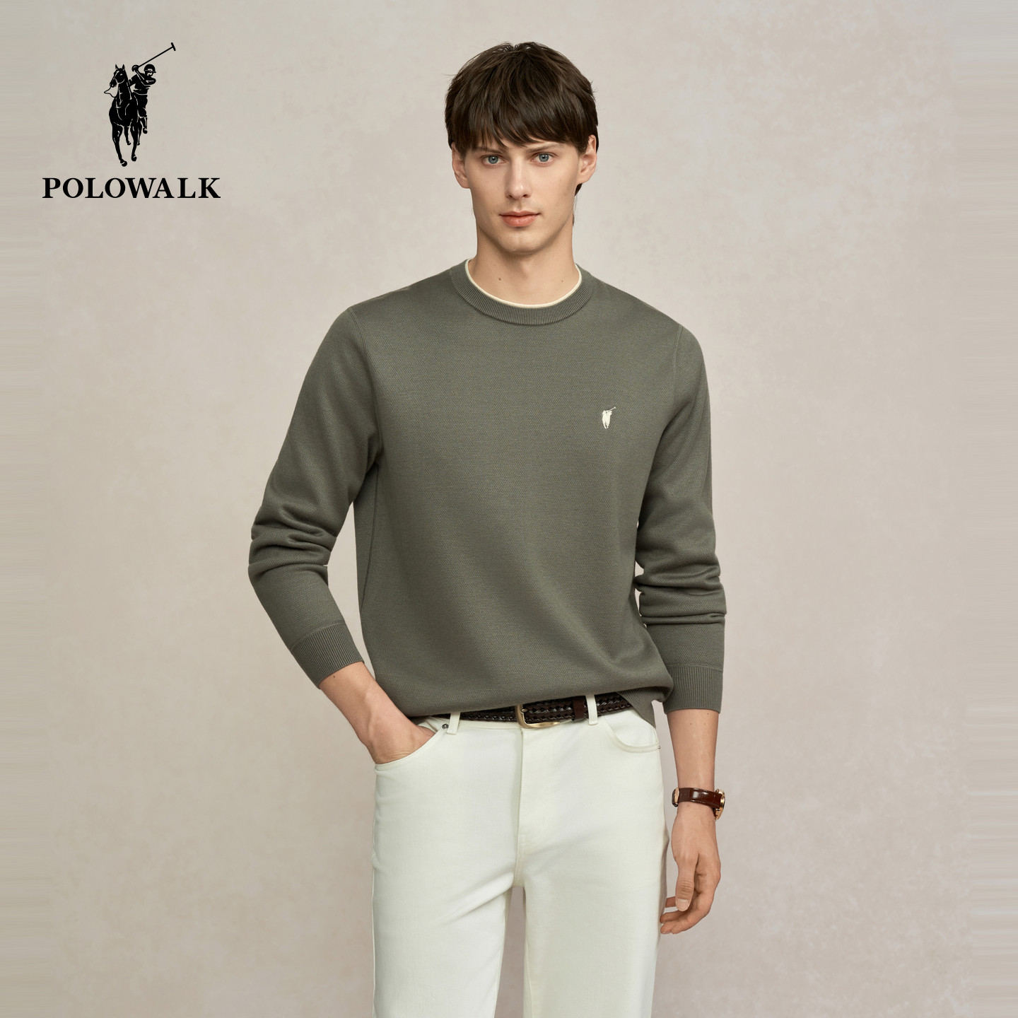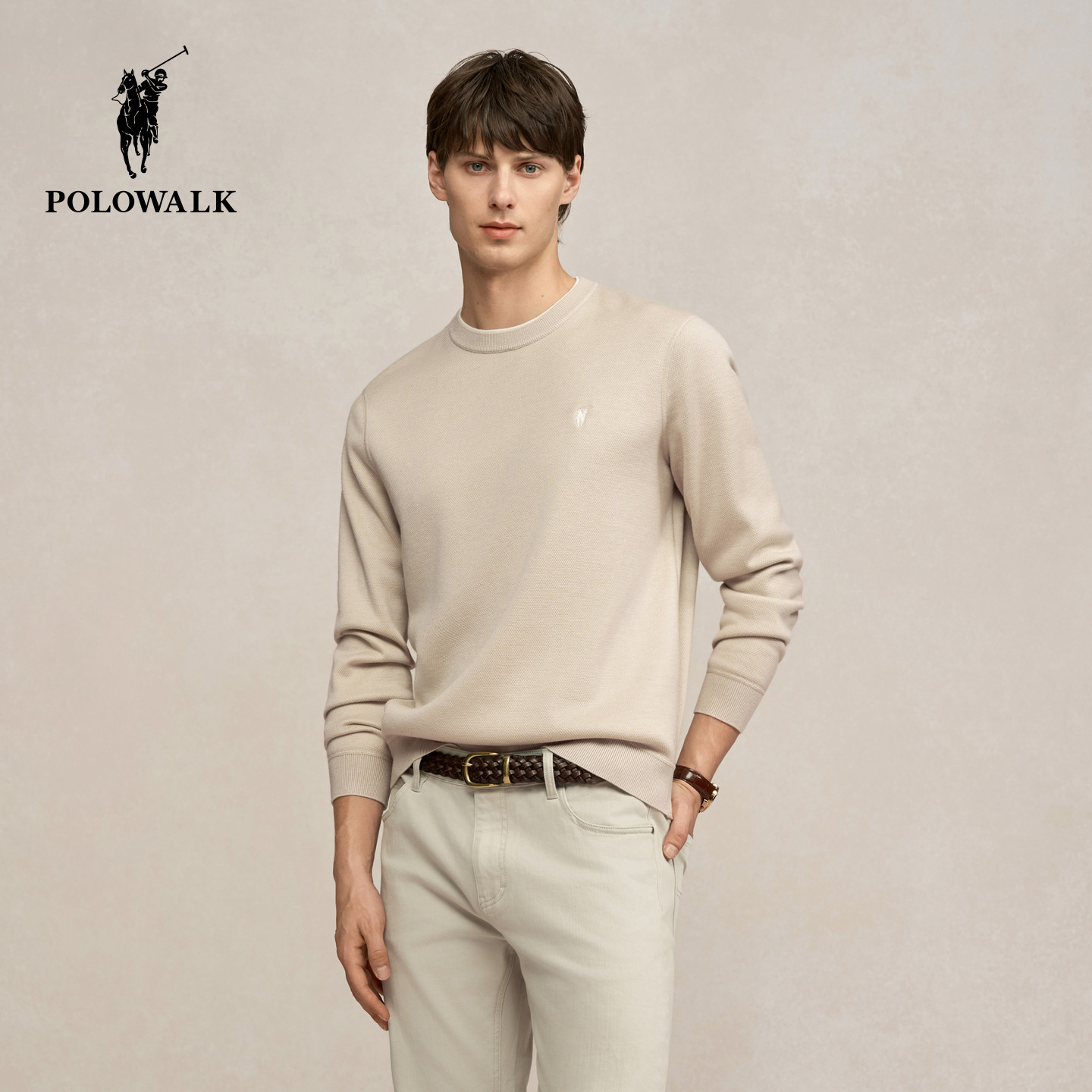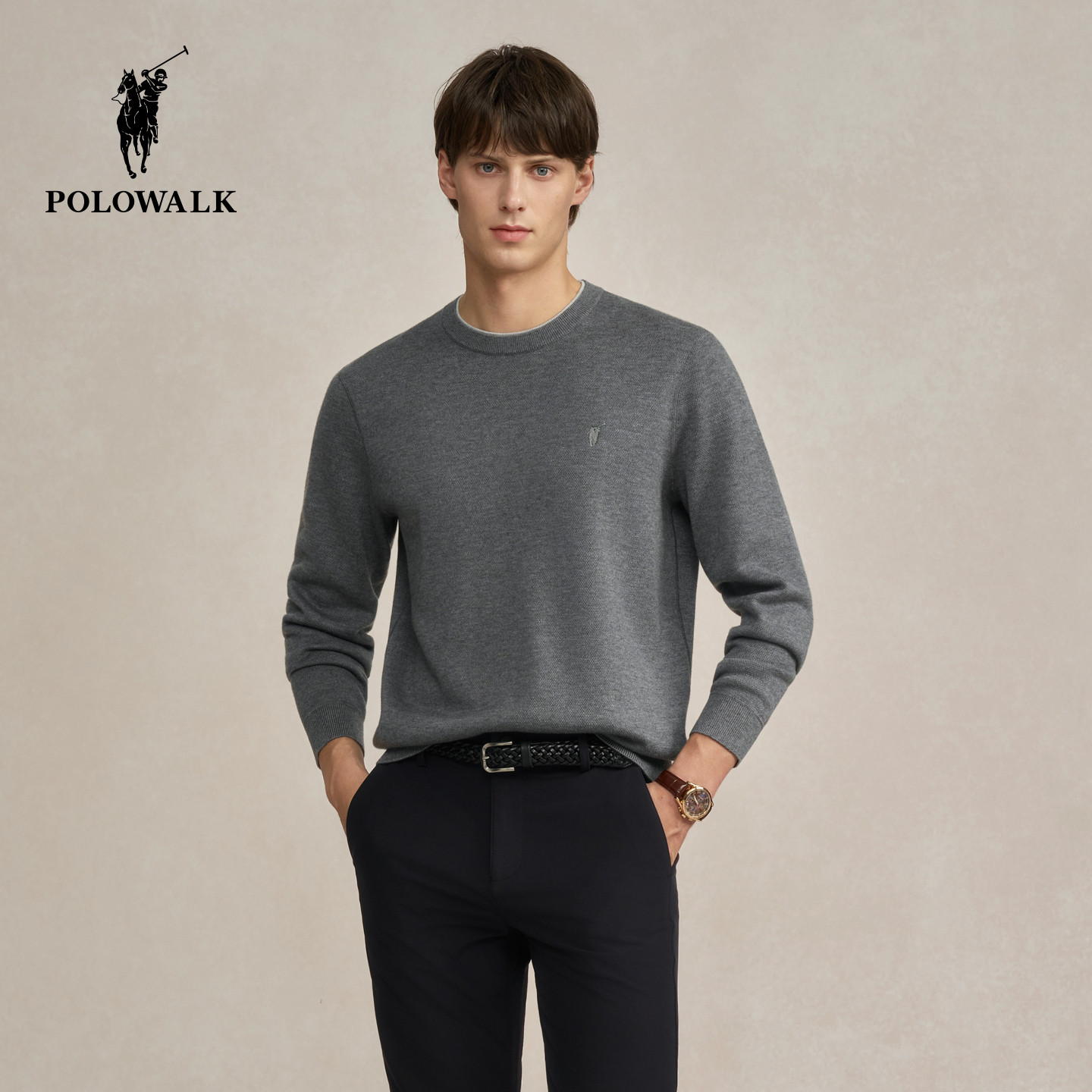 POLOWALK男式针织衫2025冬季新品简约纯色圆领套头内搭加绒打底衫