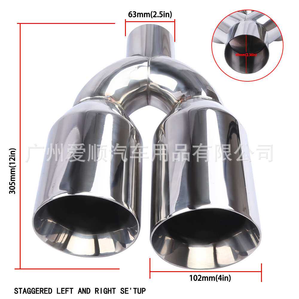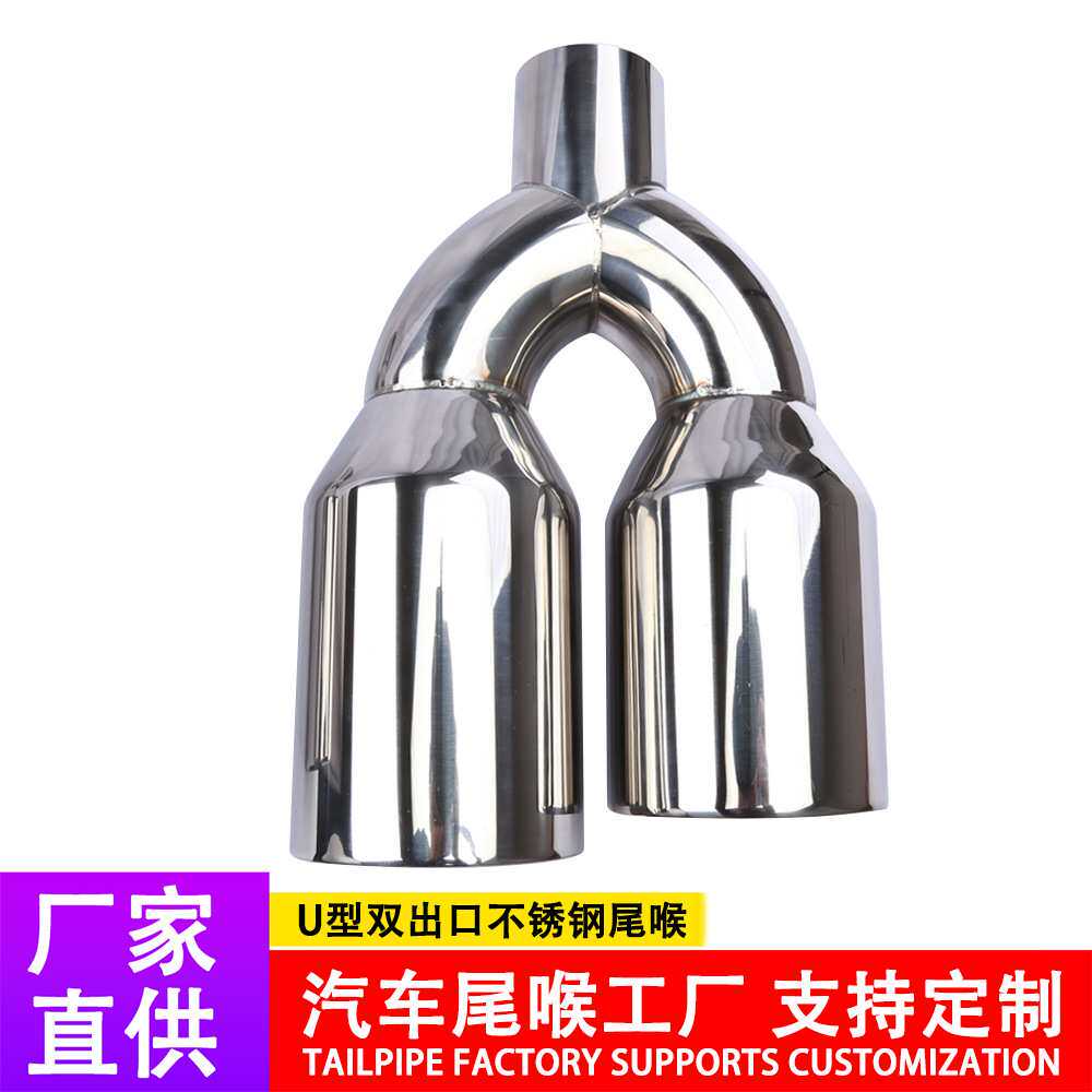 2.5寸U型双出口不锈钢尾喉63-102mm一出二双层焊边排气管改装尾喉