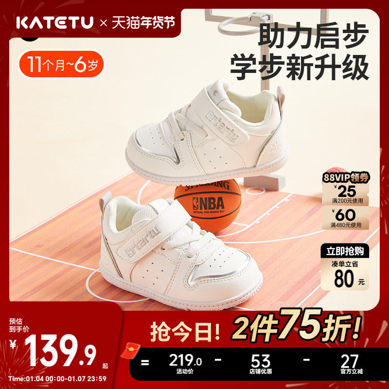卡特兔小白鞋女童宝宝学步鞋男童板鞋稳步鞋子婴儿机能鞋软底童鞋