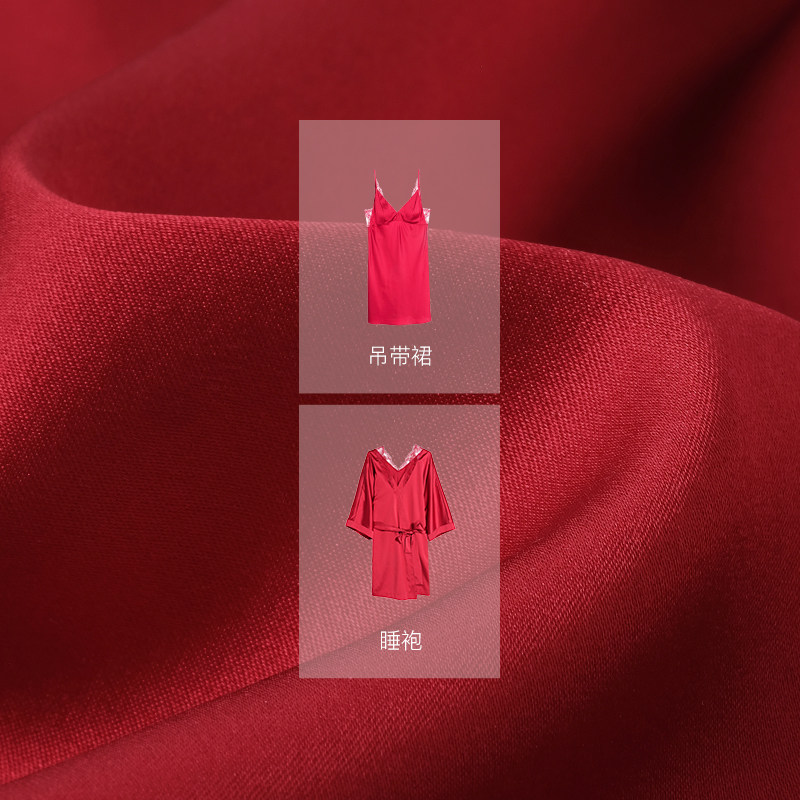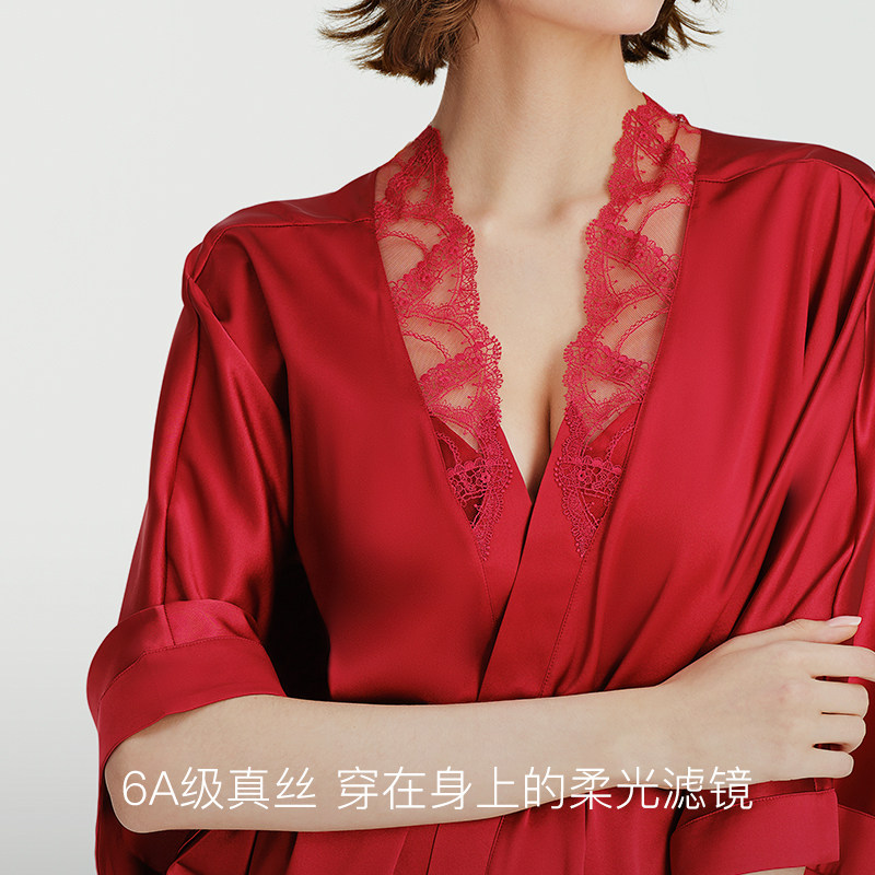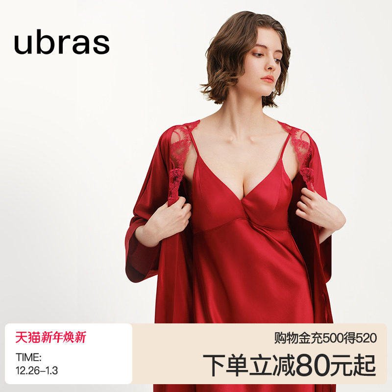 ubras轻奢系列蕾丝睡裙结婚晨袍桑蚕丝红色真丝睡袍性感睡衣套装