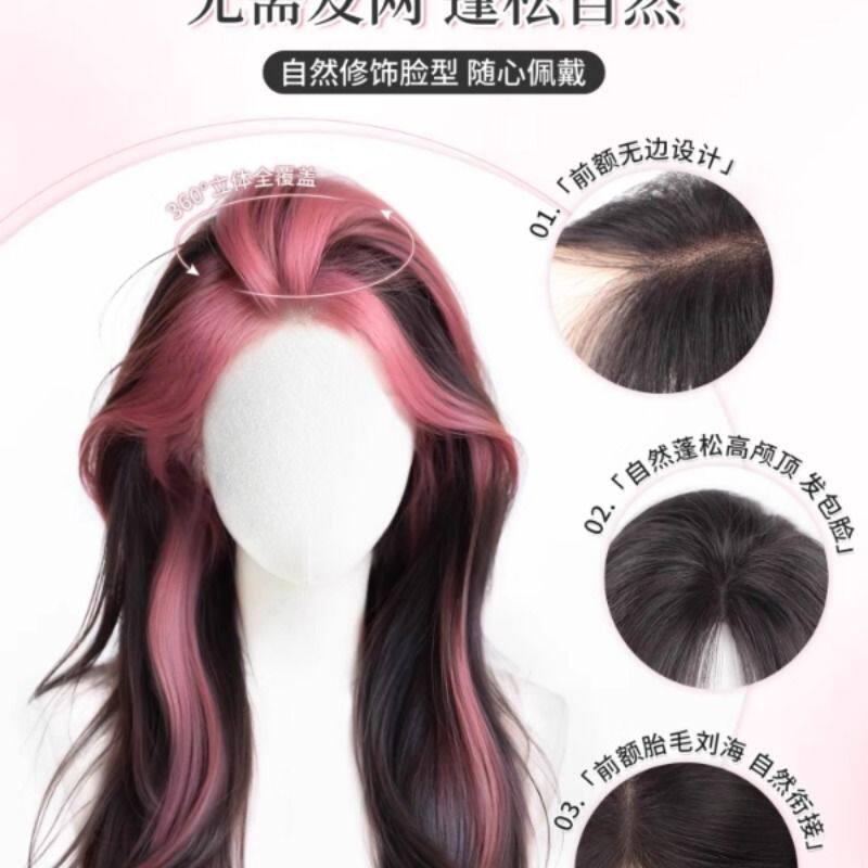 不用戴发网假发片挑染女长发头顶补发蓬松高颅顶内扣长卷发全头套