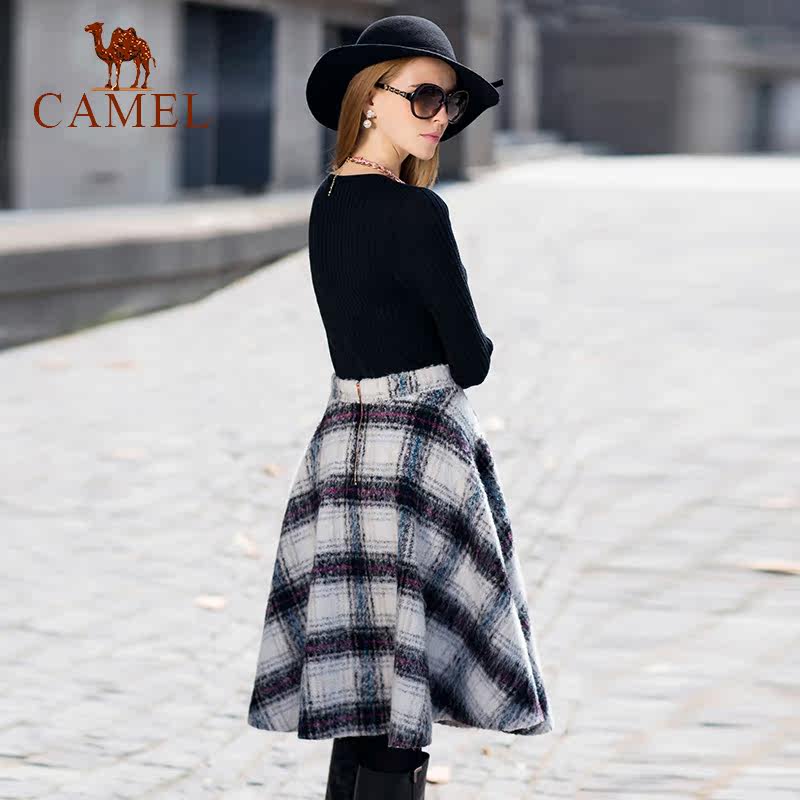 【非卖品】camel骆驼女装2015秋款 欧美风格纹高腰显瘦A字羊毛呢