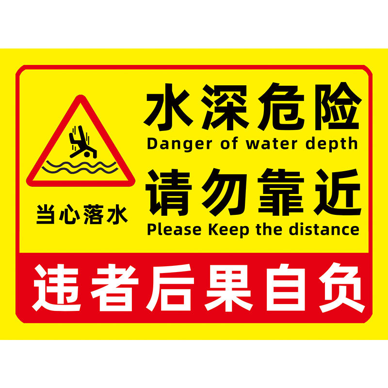 水深危险请勿靠近警示牌鱼塘警示牌安全标识牌水深危险禁止垂钓标识河边防溺水广告牌贴纸当心落水温馨提示牌