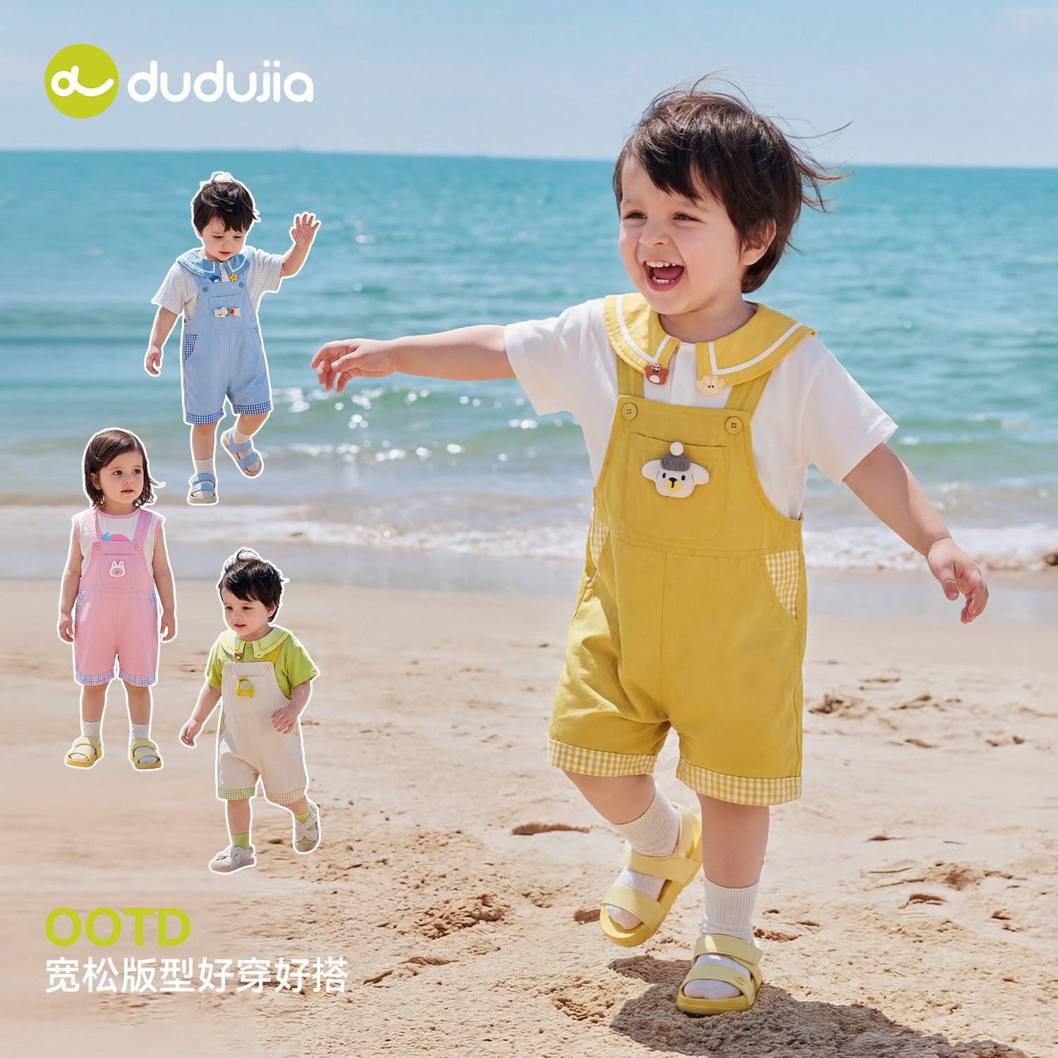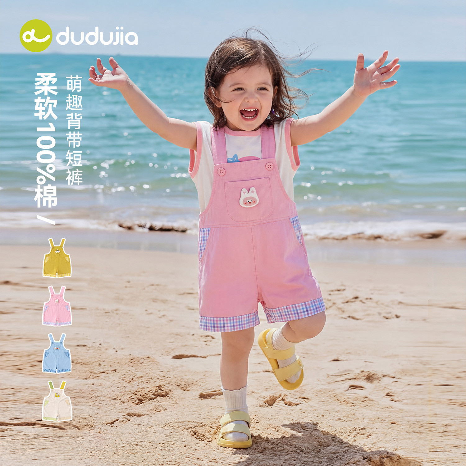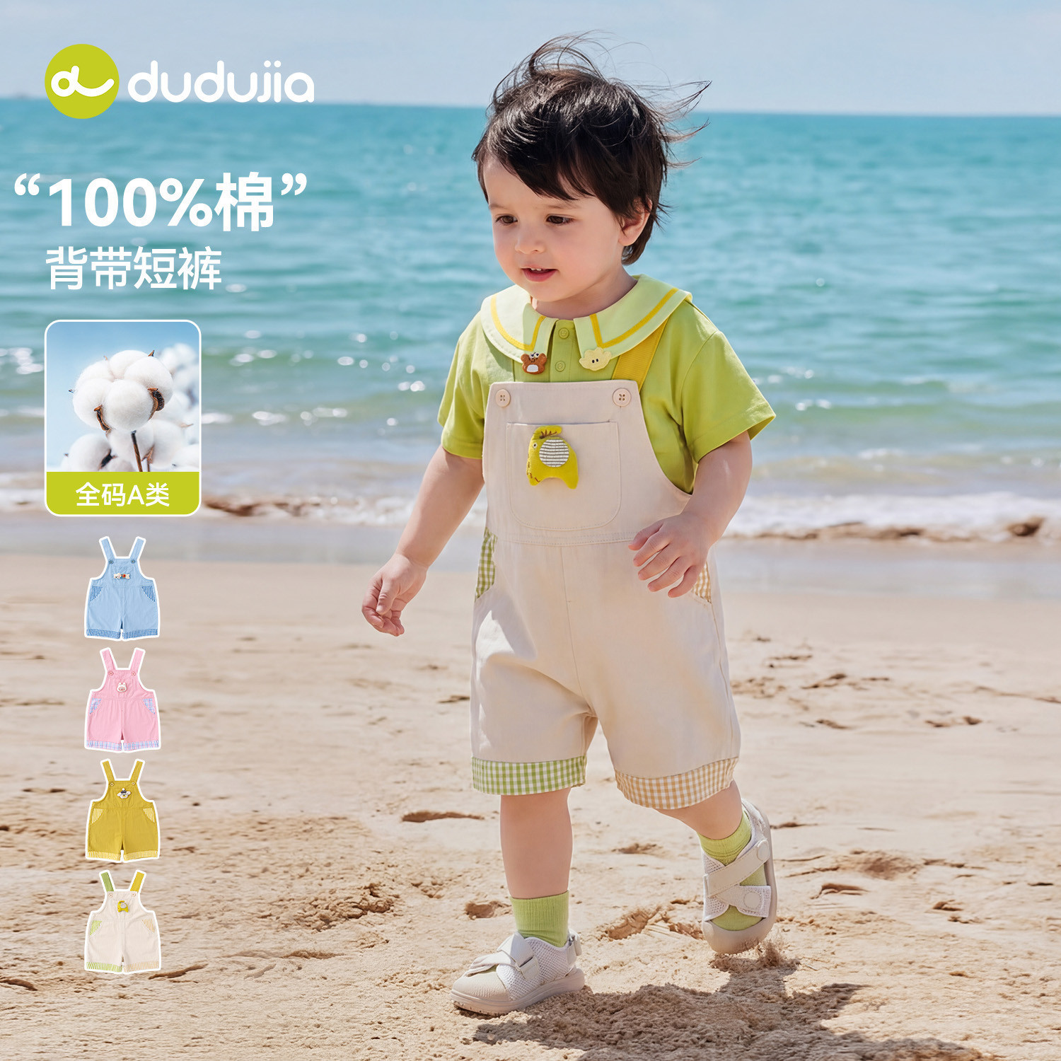 【100%棉】dudujia儿童裤子纯棉男童夏季童装背带裤女童轻薄夏装