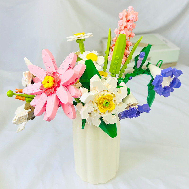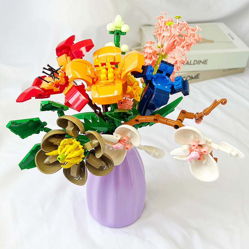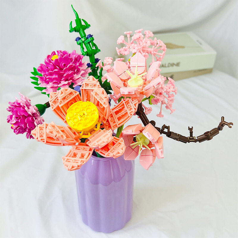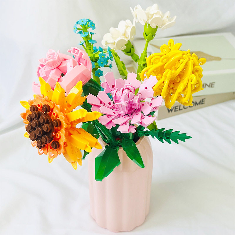永生花植物花束积木拼装玩具创意盆栽儿童女孩摆件手工圣诞节礼品