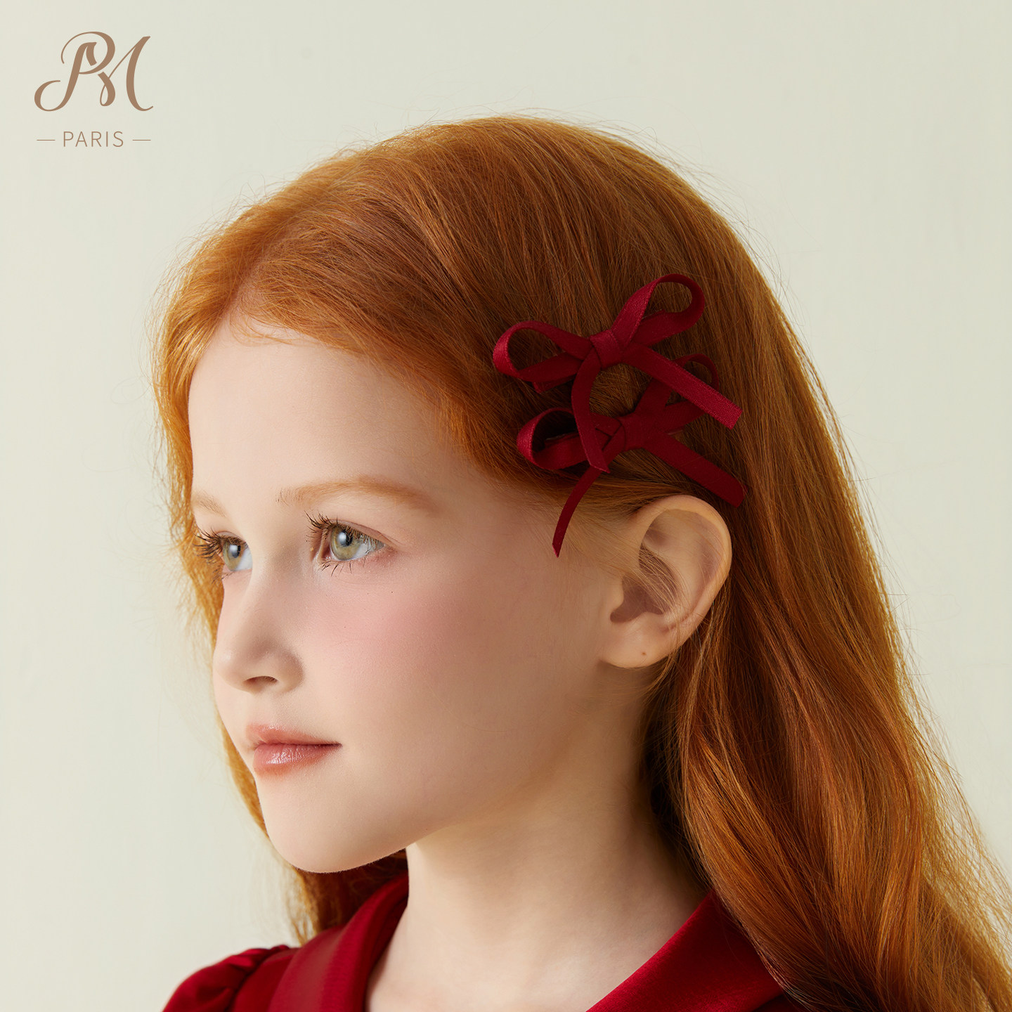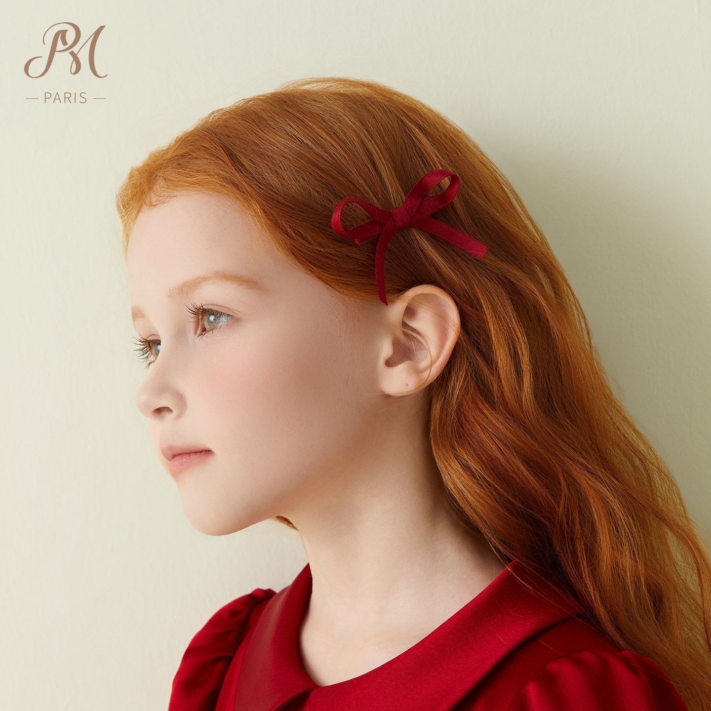 Petite Marguerite小雏菊童装·韩系精致侧边红色丝带蝴蝶结发夹