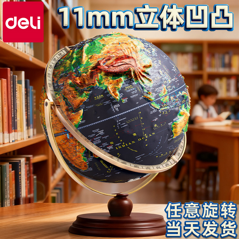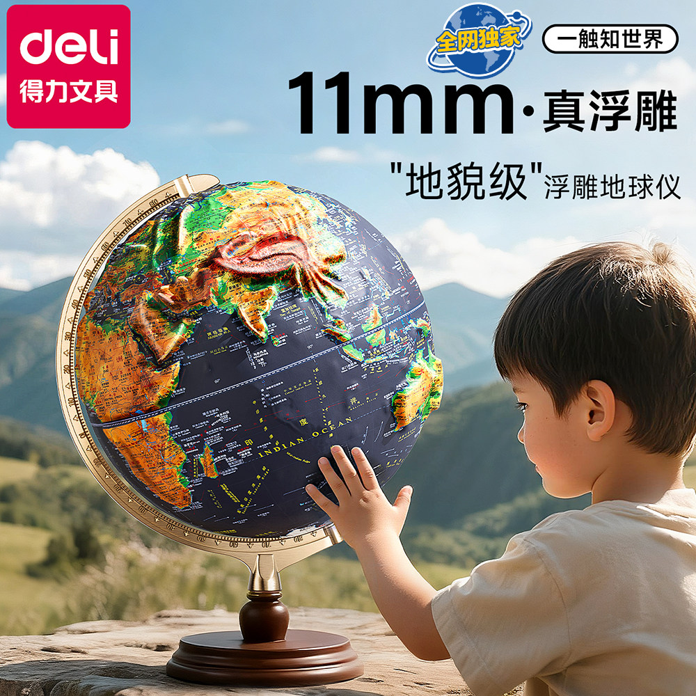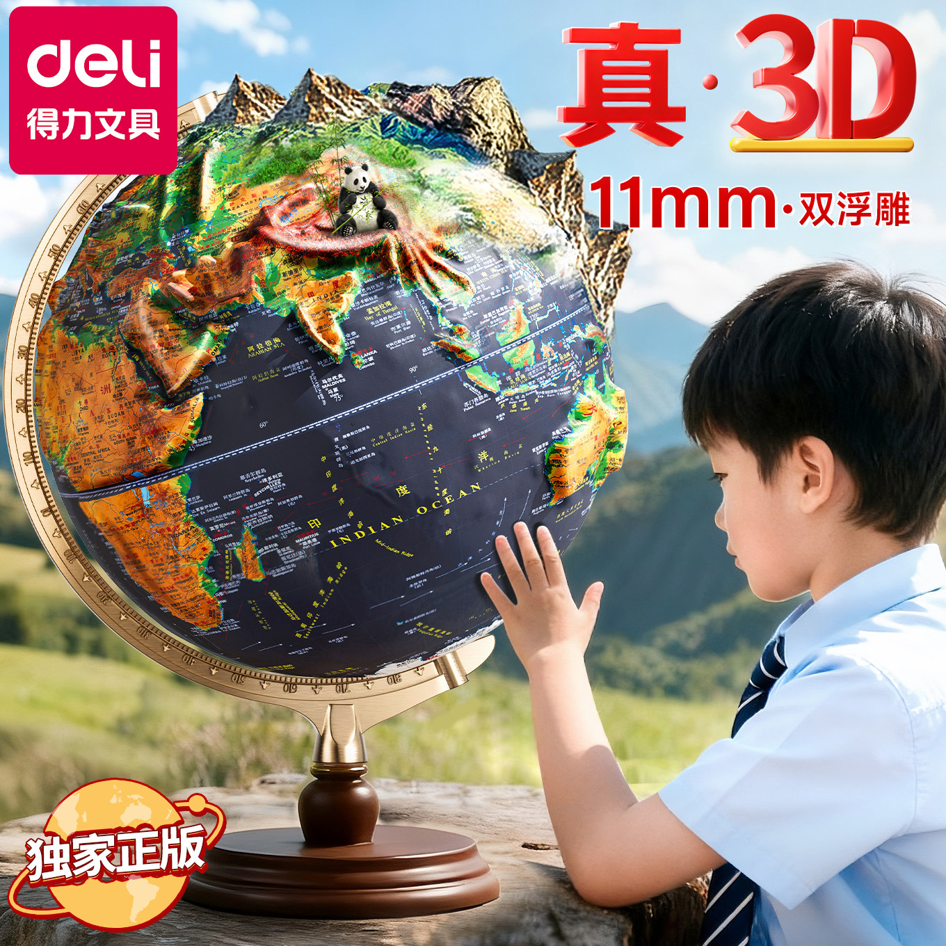 得力地球仪3d立体悬浮正版学生用初中生2025新款儿童启蒙3d立体凹凸小学生用高浮雕摆件轻奢高档男孩生日礼物