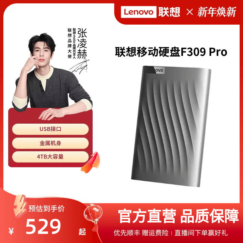 联想移动硬盘1t高速传输F309 Pro外接大容量非固态机械硬盘2t正品