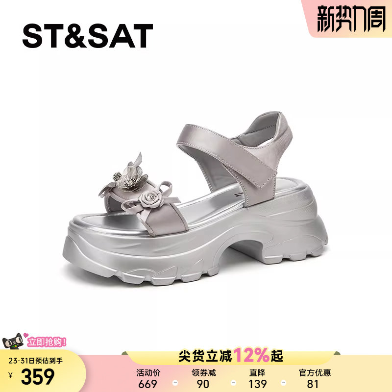 星期六厚底增高运动凉鞋女款新款夏季小香风魔术贴亮片沙滩鞋