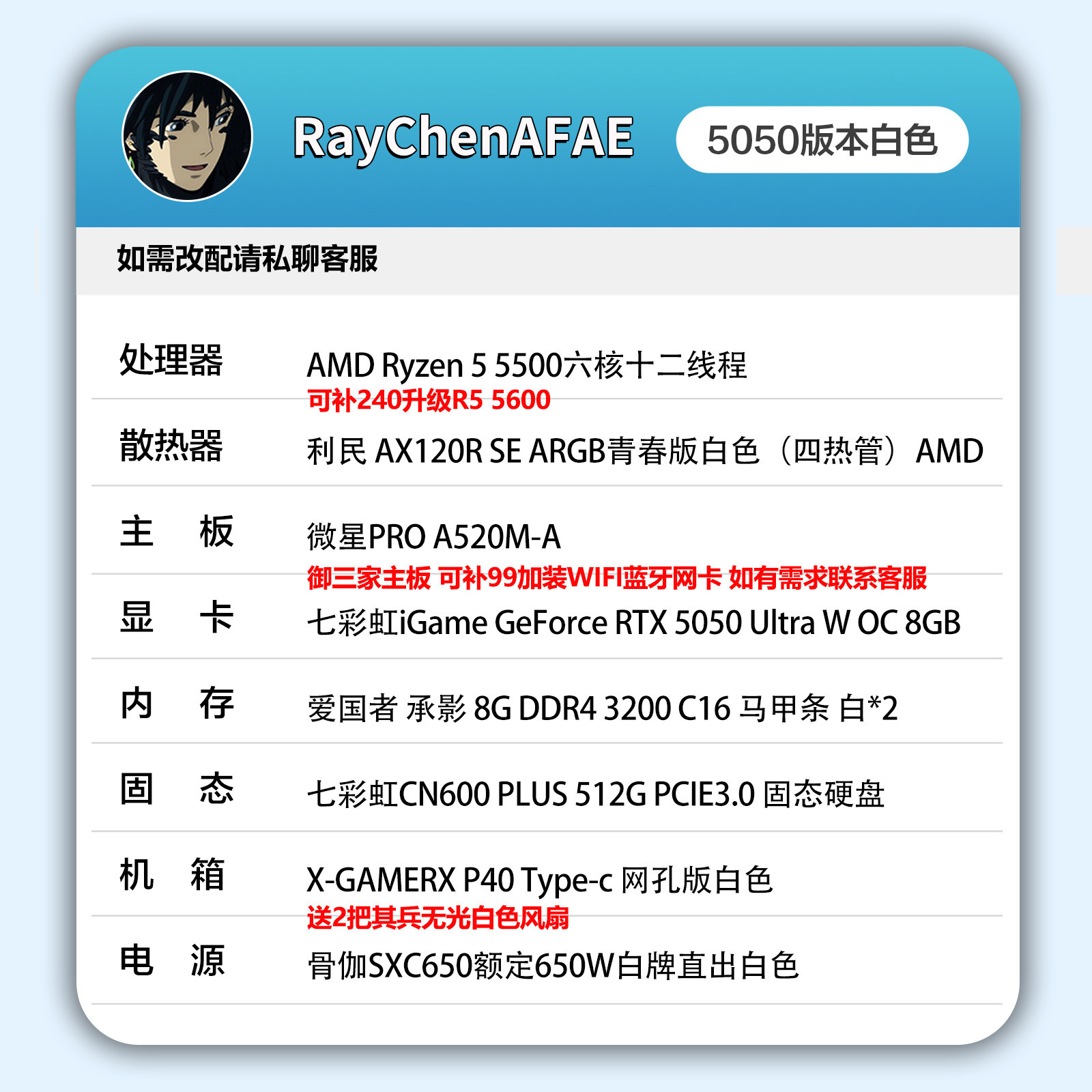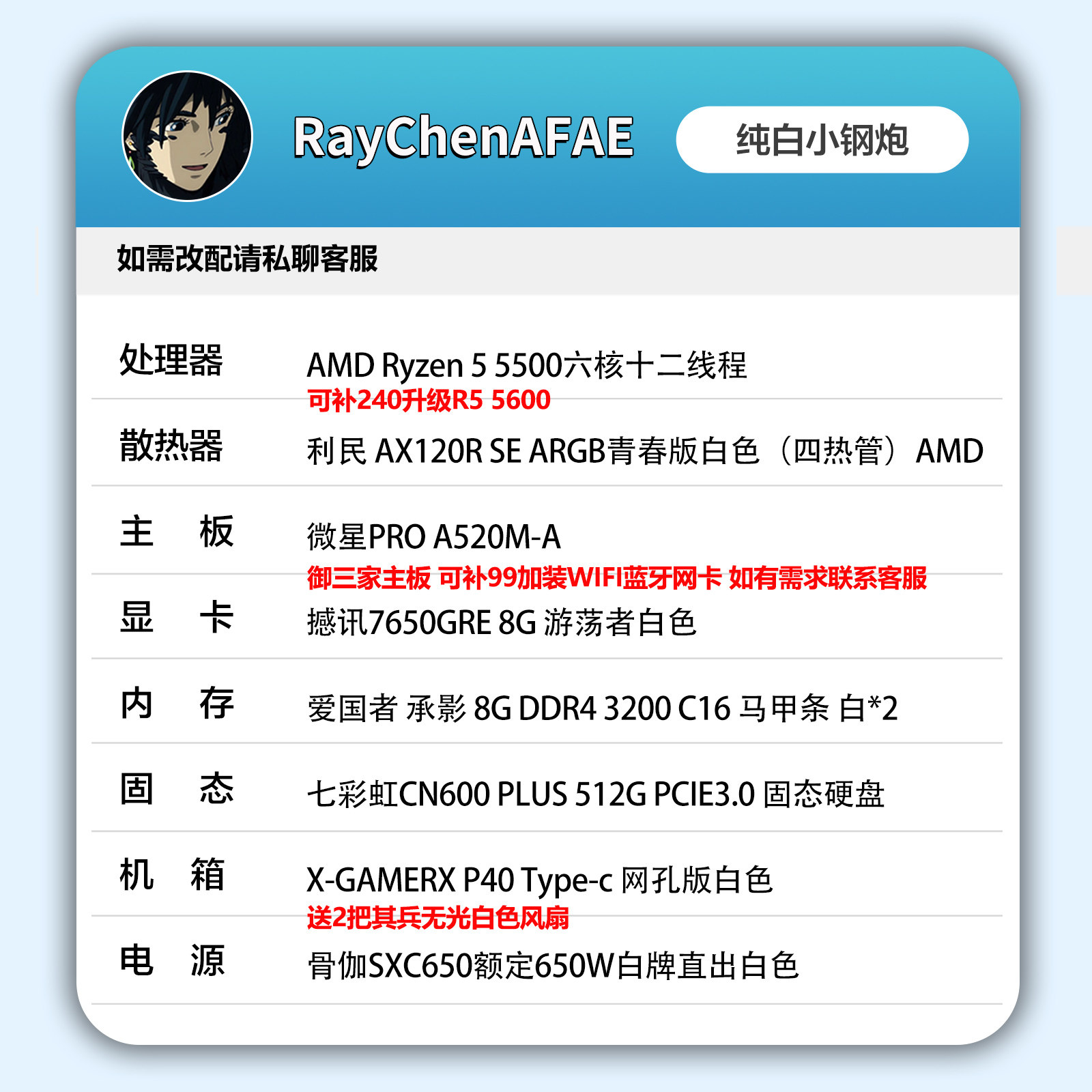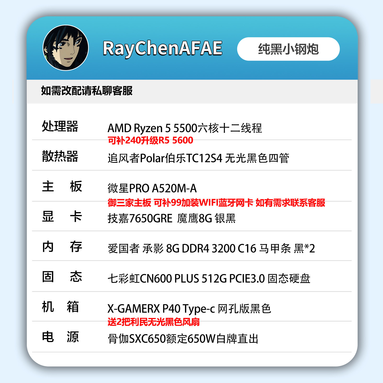 5500+7650GRE 4K预算无光手提小钢炮高性能DIY游戏生产力电脑主机