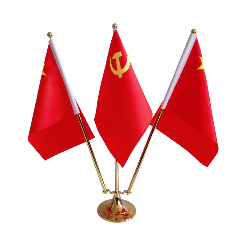 钛金桌旗摆件高档三杆W型签约会议办公桌上旗帜国旗党旗摆件装饰