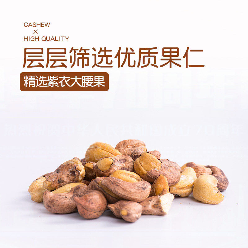 秋淘带皮大腰果仁500g原味盐焗紫皮新货越南特产坚果干果孕妇零食