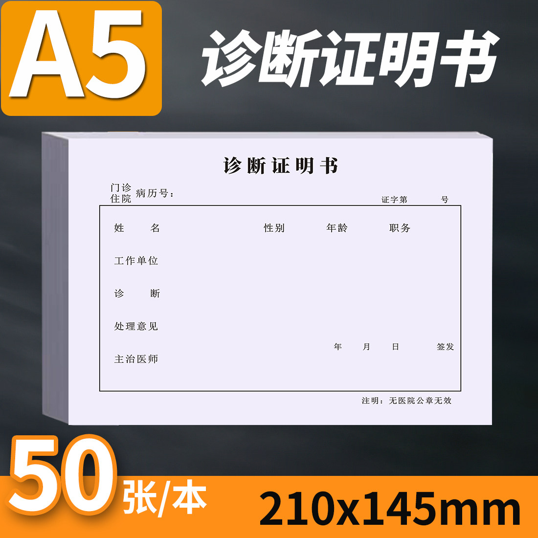 A5标准尺寸、医疗机构、正规版面、每本50张