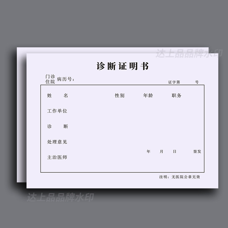 A5医院诊所诊断说明门诊患者就诊诊断手写单子病况记录单发烧医疗机构诊断记录表医生诊断书休假单病假建议单