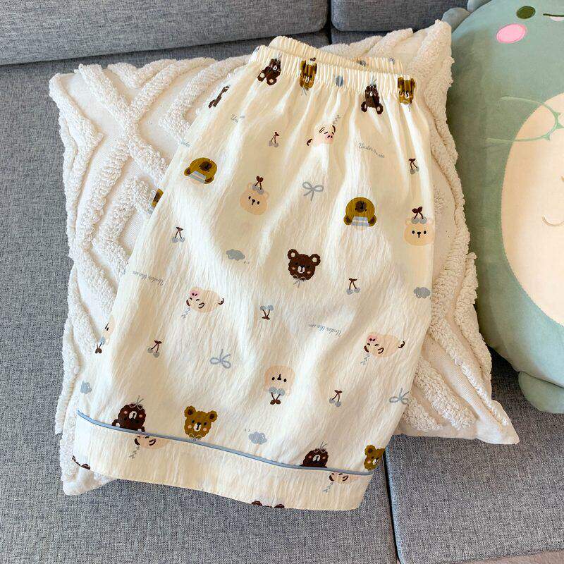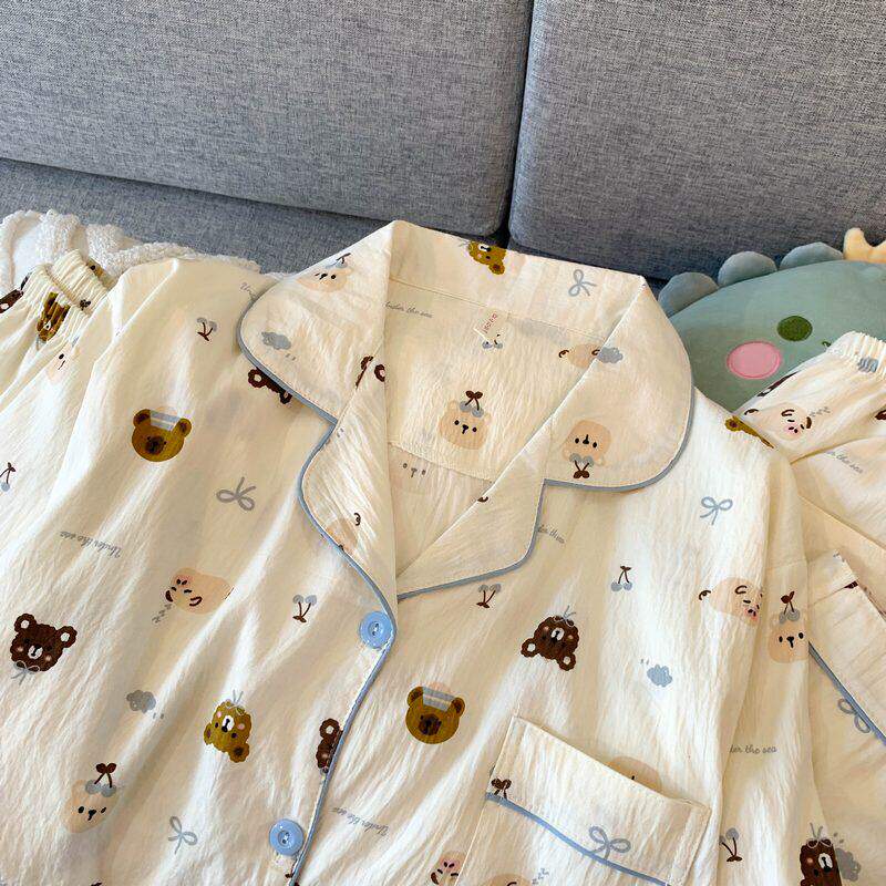 红豆可爱小狗大码睡衣女夏季云朵纯棉短袖三件套少女休闲可外穿家
