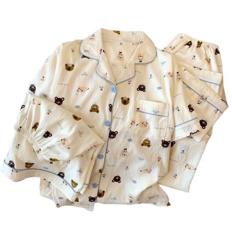纯棉带胸垫睡衣女2025新款春秋季长袖套装可爱卡通韩版家居服秋冬
