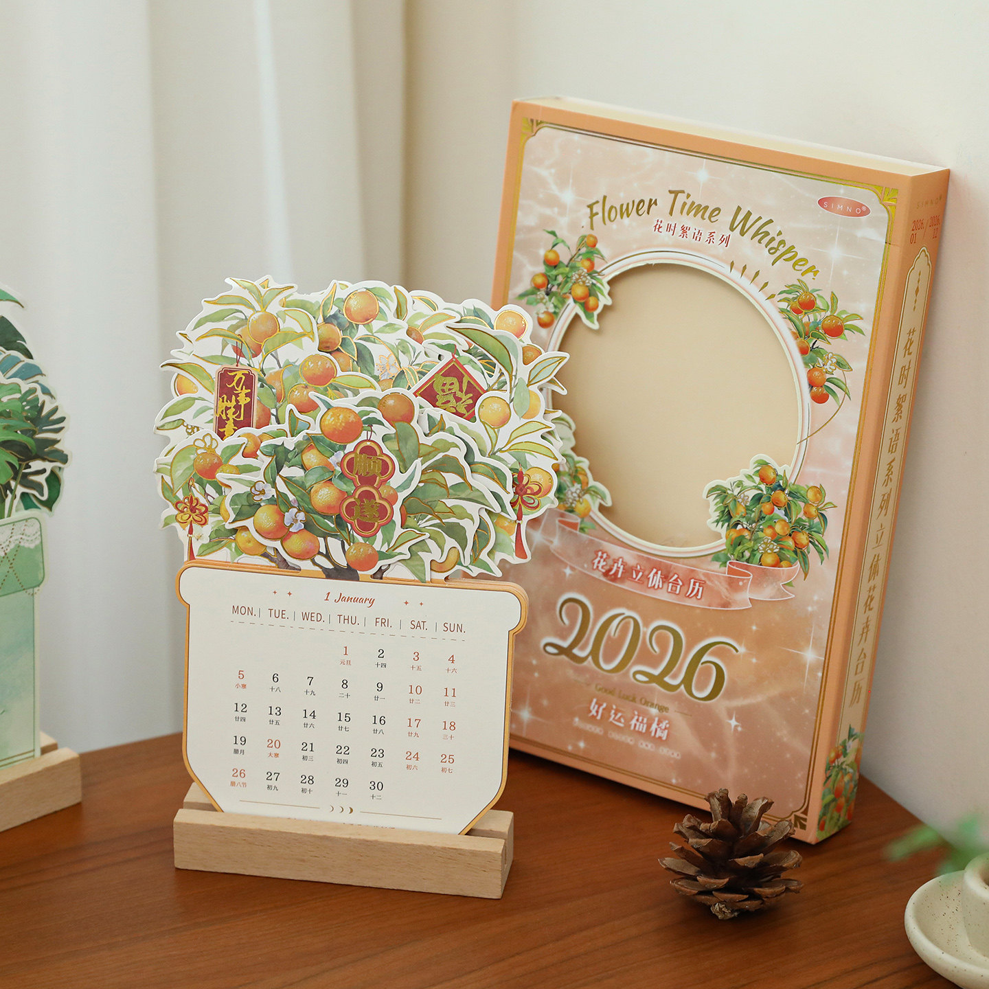 2026年台历礼盒装创意简约办公月历定制笔筒木质桌面摆件马年打卡日历计划本记事历新年礼品物流保险银行台历