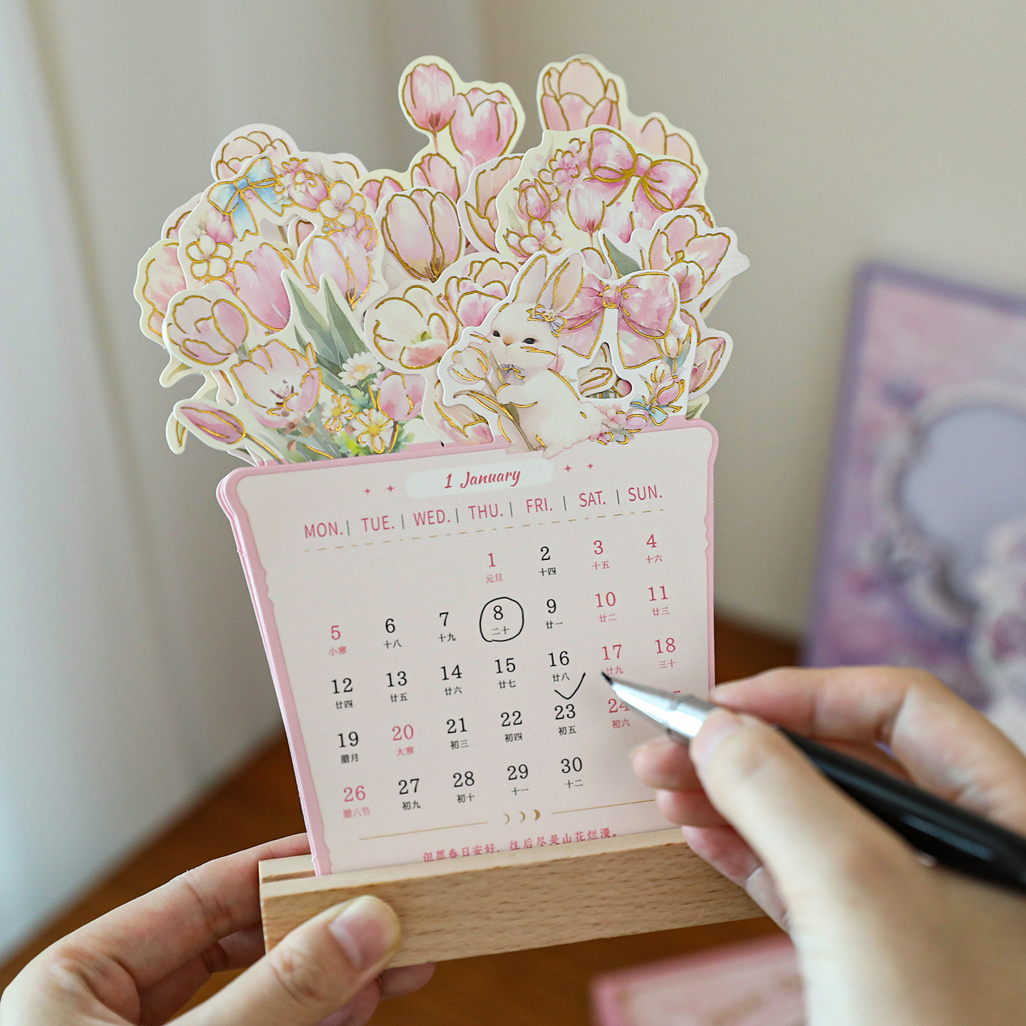 小日子不翻篇 新年礼物2026年玫瑰花卉台历 立体插画日程创意日历