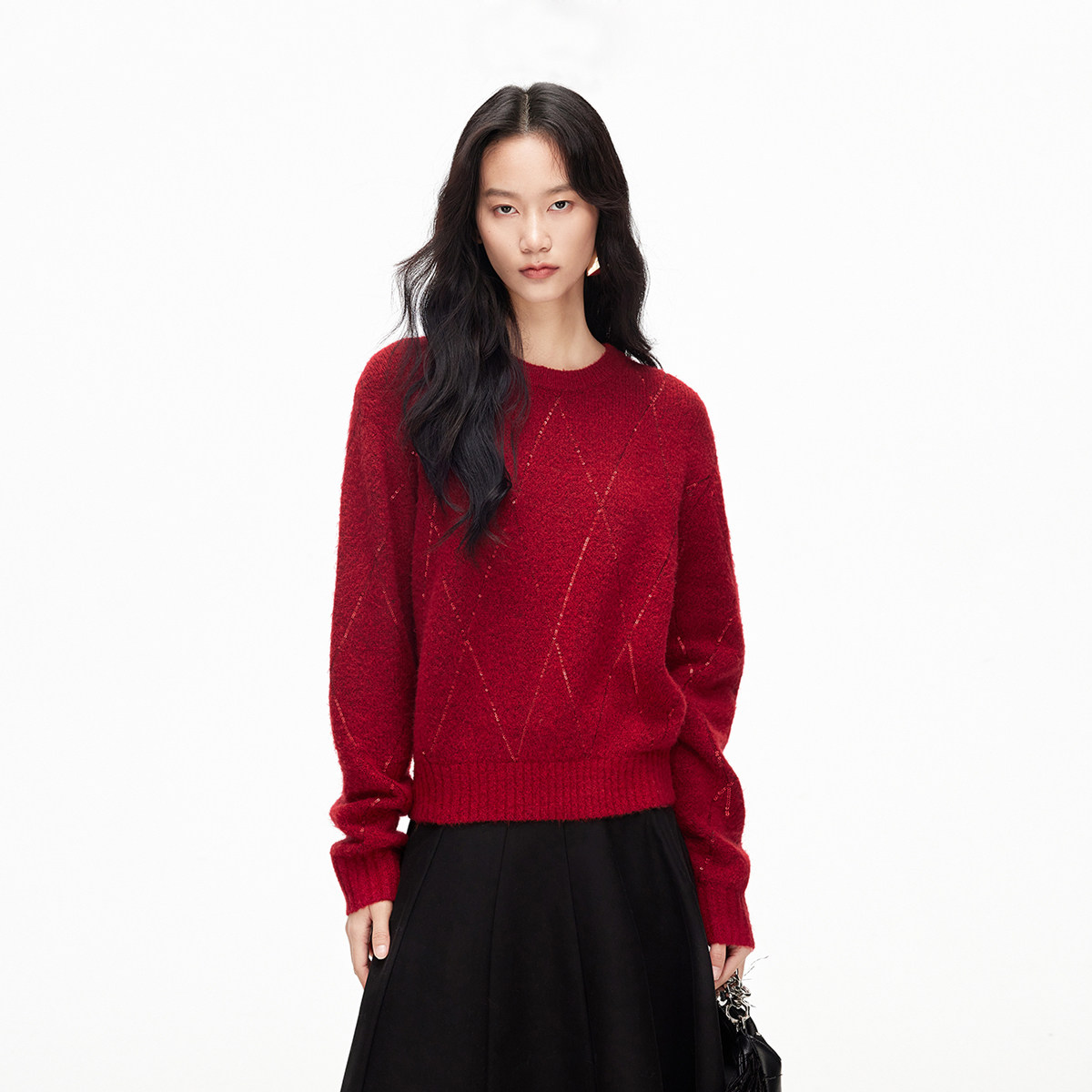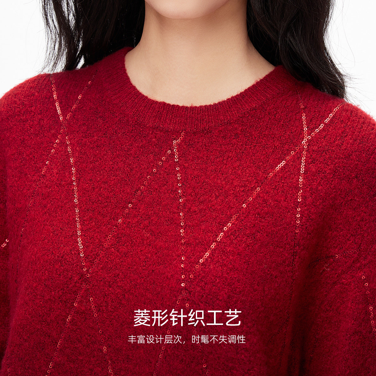 Vero Moda毛衣2026春季新款含绵羊毛亮片红色圆领针织衫326113010