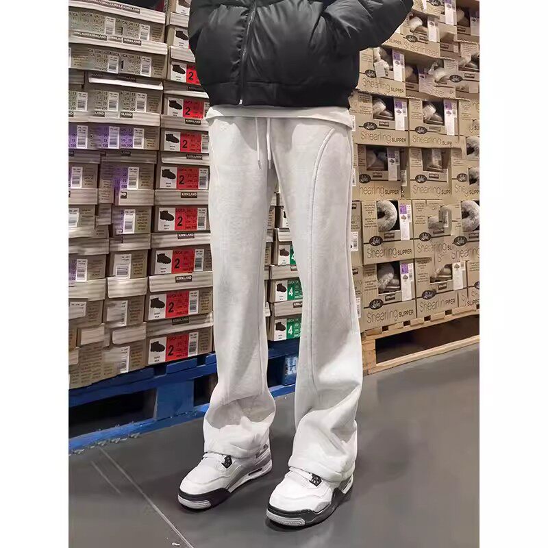 白花灰美式斜切弯刀卫裤男款秋冬窄版直筒垂感裤子加绒微喇休闲裤