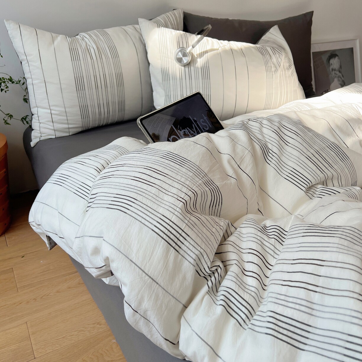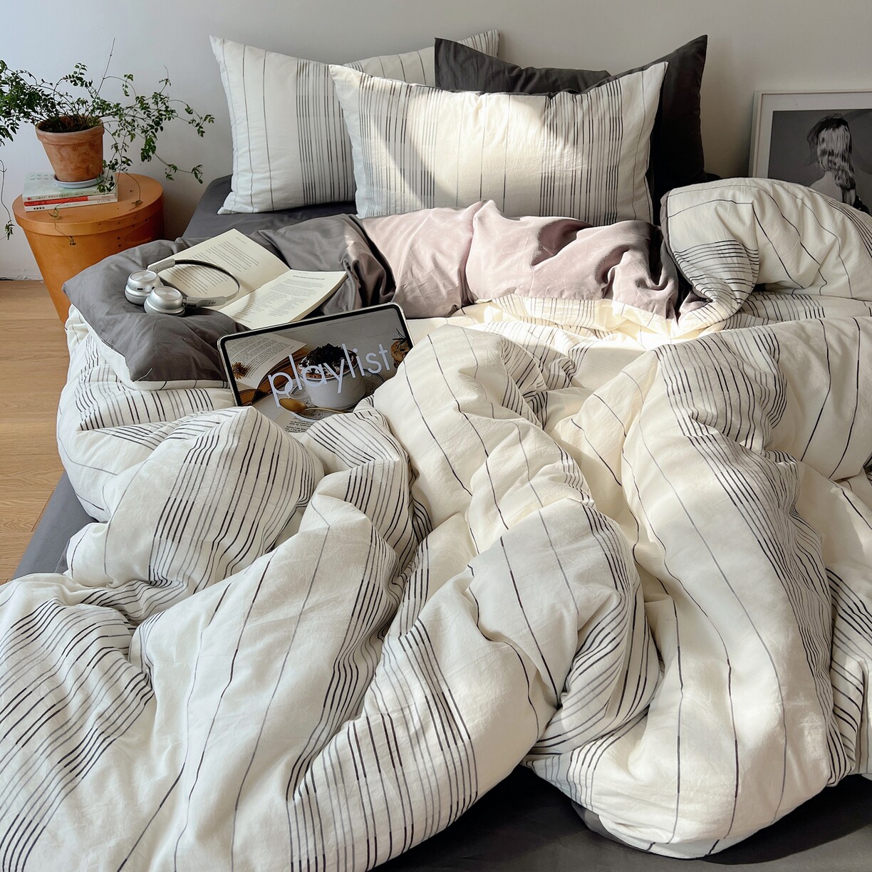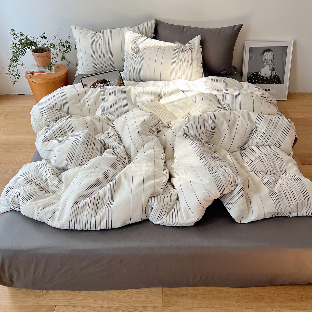 全棉色织小提花四件套简约条纹纯棉床品套件被套床单枕套北欧风
