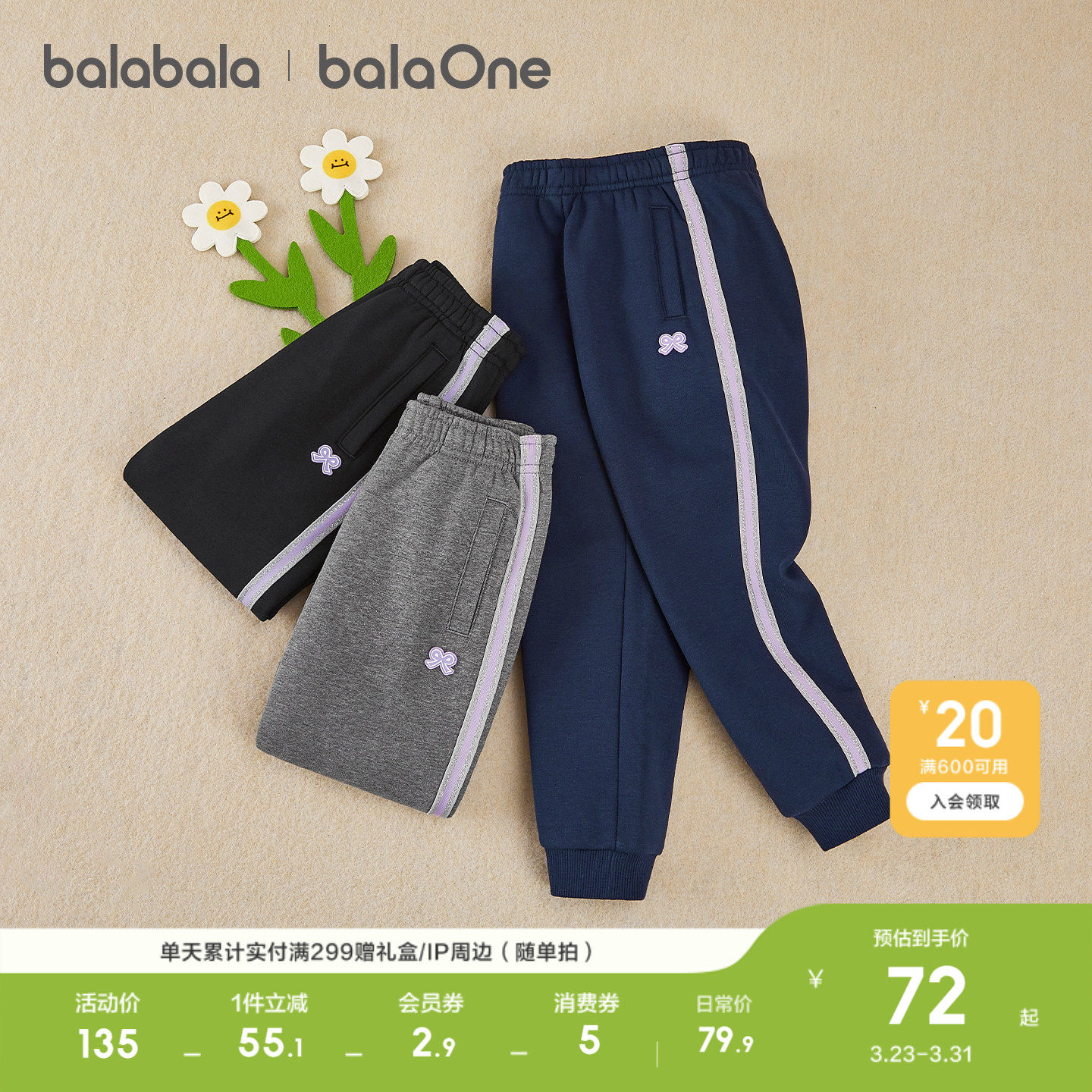 巴拉巴拉童装女童加绒运动裤子2026秋冬装休闲加厚保暖儿童长裤潮