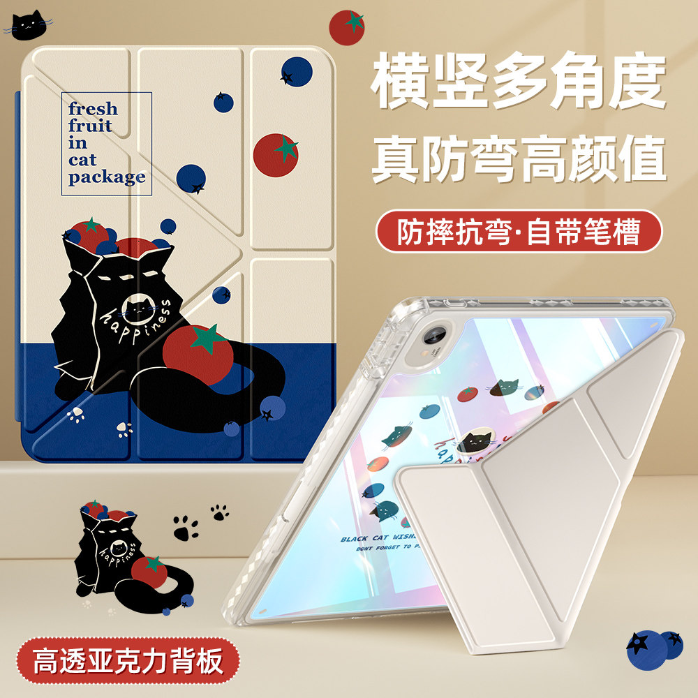 适用华为平板保护套2024新款matepad11带笔槽y折matepadpro壳115s柔光版se10.4寸亚克力全包适用荣耀9/8镭射