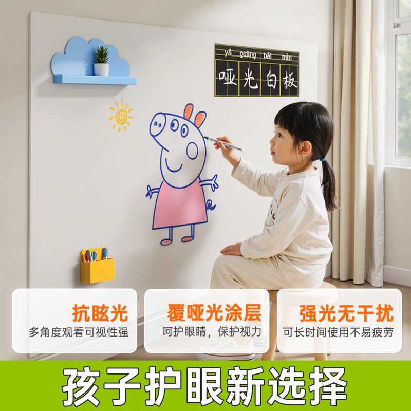 哑光白板家用教学可擦写字板磁性儿童涂鸦画画板小黑板记事板磁力贴纸投影软白板可移除不伤墙磁吸墙贴墙面